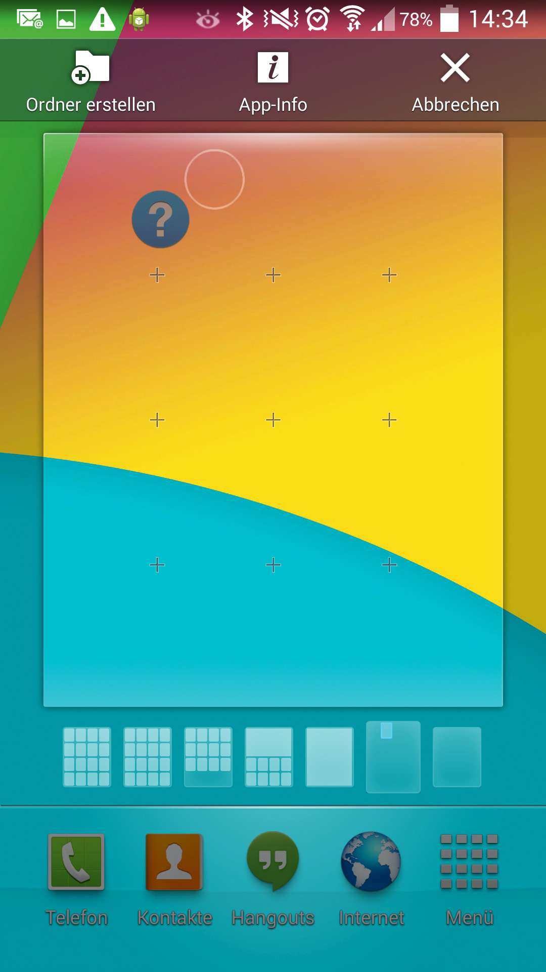 Wenn Sie auf dem Homescreen mit zwei Fingern zusammenfahren, gelangen Sie zur Homescreen-Übersicht. Hier können Sie bis zu sechs neue Startbildschirme hinzufügen, nicht verwendete löschen und die Position der einzelnen Seiten verändern.