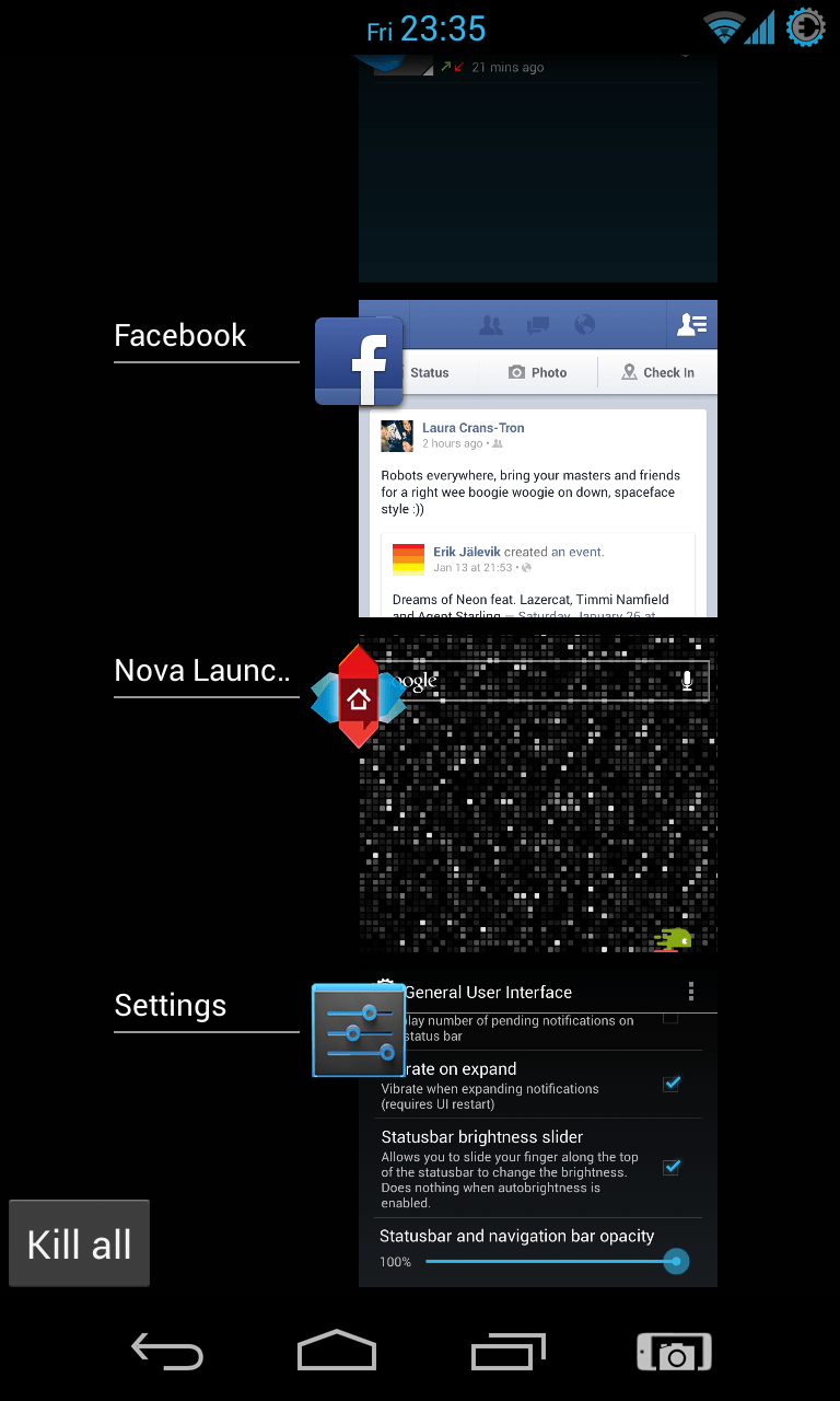 Unter Android hat man generell die freie Auswahl an Launchern. Vom Stock Launcher, diversen Hersteller-Varianten bis hin zu einer unüberschaubaren Schar alternativer Launcher im Google Play Store – für jede Vorliebe gibt es das richtige User Interface. Während das CyanogenMod mit dem Trebuchet Launcher ein ganz eigenes Exemplar herangezüchtet hat, setzt AOKP auf Bewährtes: Man kann zwischen dem Stock Android-Launcher wählen, der im Funktionsumfang eher limitiert ist, oder auf den Nova Launcher ausweichen, der unzählige neue Features mit sich bringt. So lässt sich von der Anzahl der Icon-Spalten über die Dock-Leiste bis hin zu Gestensteuerung so ziemlich alles den eigenen Wünschen und Bedürfnissen anpassen.