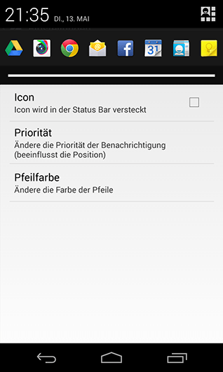 Fühlen Sie sich von dem Bar-Launcher-Symbol in der Statusleiste gestört? Dann rufen Sie den Menüpunkt „Einstellungen“ auf und schalten anschließend im „Einstellungen“-Fenster die Option „Icon“ aus.