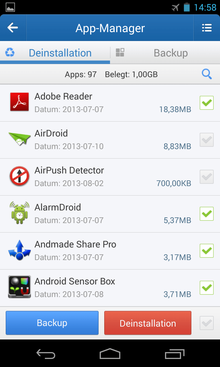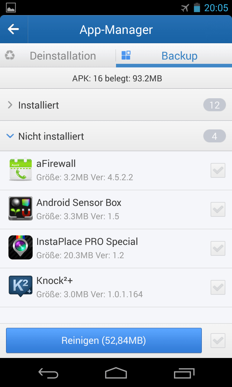 Der „App-Manager“ ermöglicht es Ihnen, Sicherungskopien der App-Installationsdateien herzustellen.