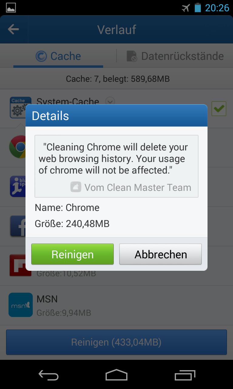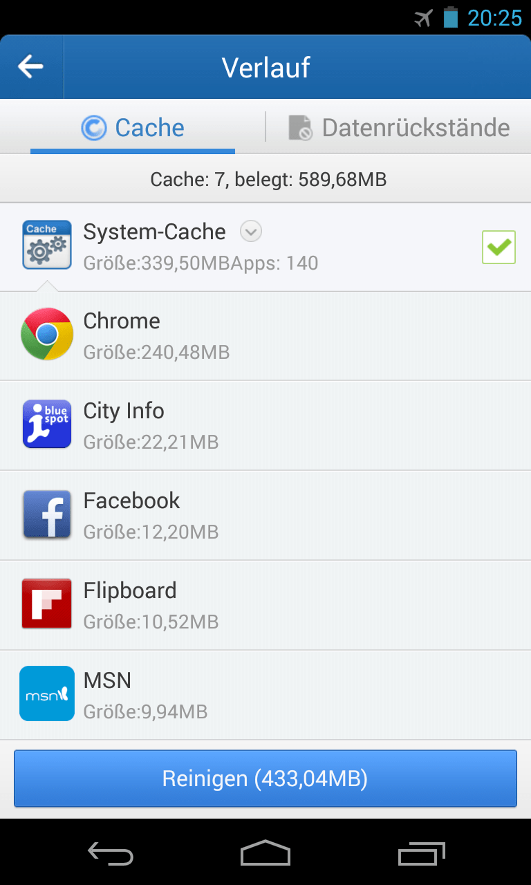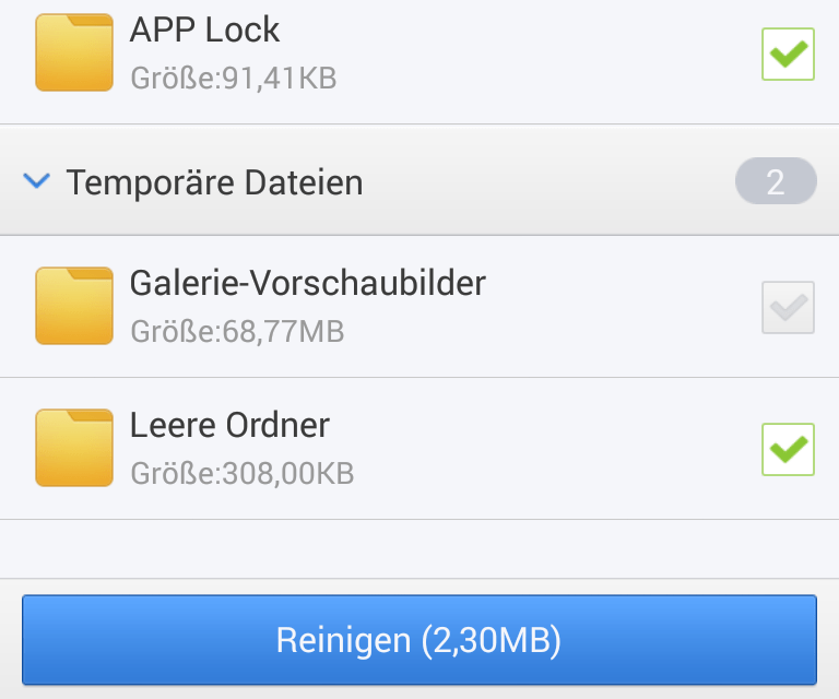 sowie speicherplatzfressende Überbleibsel von deinstallierten Apps.