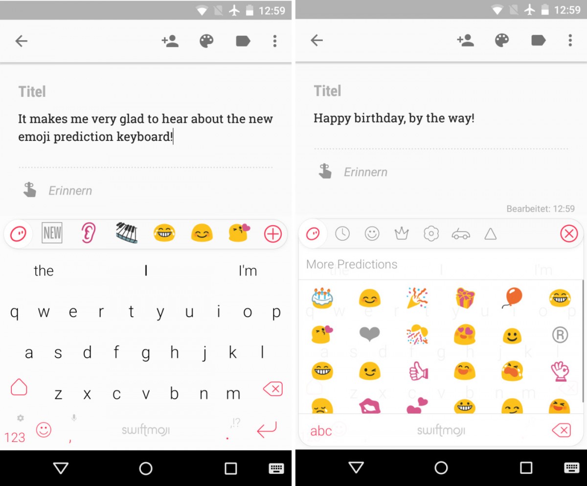 Sicherlich die wichtigste technische Innovation dieses Jahres: Die Bildschirmtastatur „Swiftmoji“ ist imstande, nicht nur das nächste Wort vorzuschlagen, sondern auch die Emojis, die du höchstwahrscheinlich verwenden möchtest.
