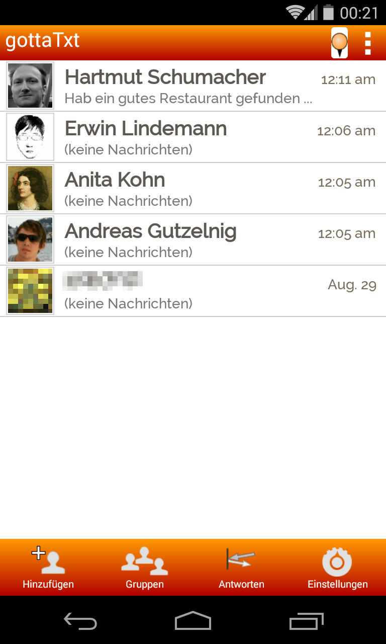 Vorrangig ist die App dazu gedacht, Nachrichten mit anderen GottaTxt-Anwendern auszutauschen. Die Software ist aber auch imstande, Nachrichten an diejenigen Ihrer Freunde zu senden, die GottaTxt nicht auf ihrem Smartphone installiert haben. Standardmäßig verschickt die App die Nachrichten dann als SMS-Nachrichten (ohne dass Sie jedoch die Kosten für einen Versand per SMS zahlen müssen.) Alternativ dazu können Sie die App dazu anhalten, Nachrichten an solche Freunde per E-Mail zu verschicken. Das legen Sie in den Einstellungen der App mit der Option „Versand an Nicht-Nutzer“ fest.