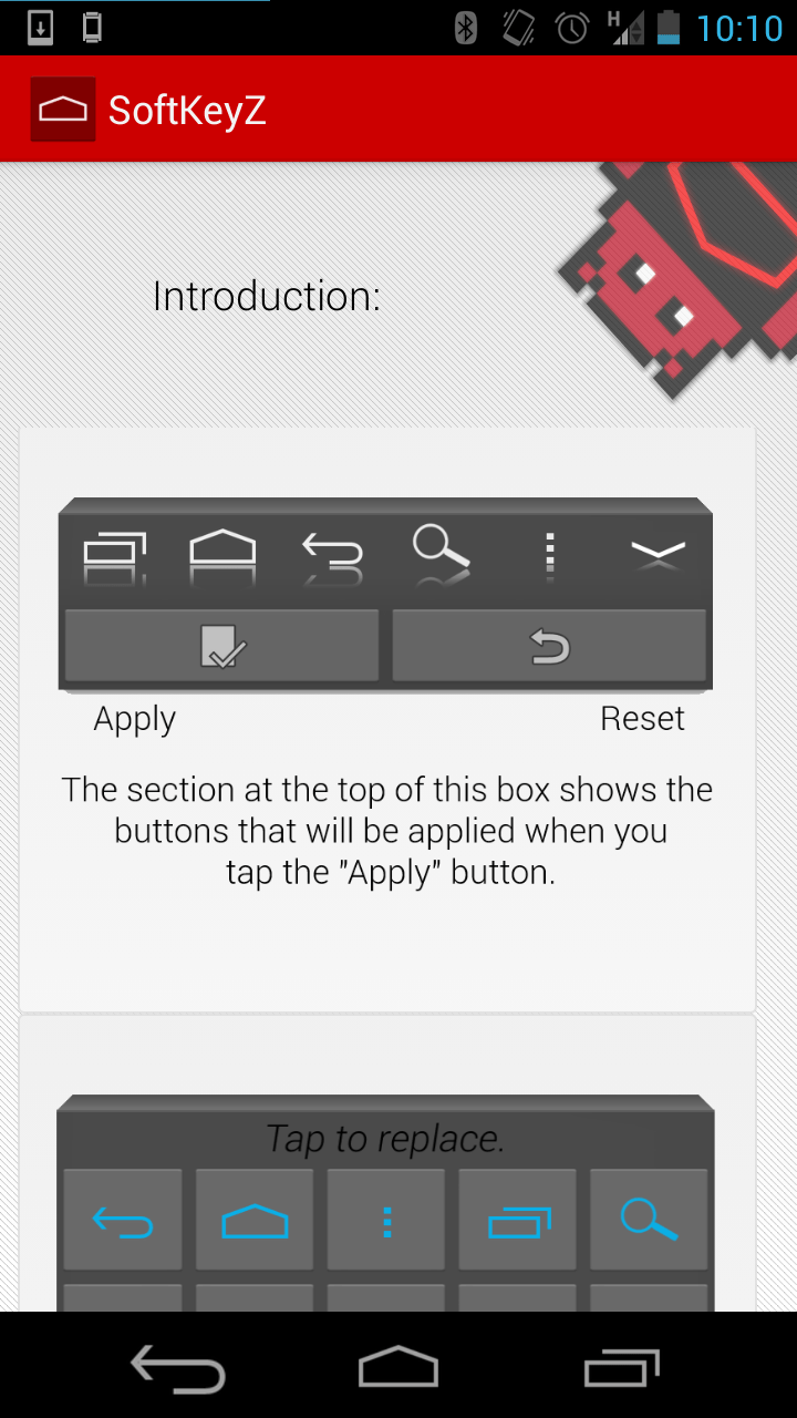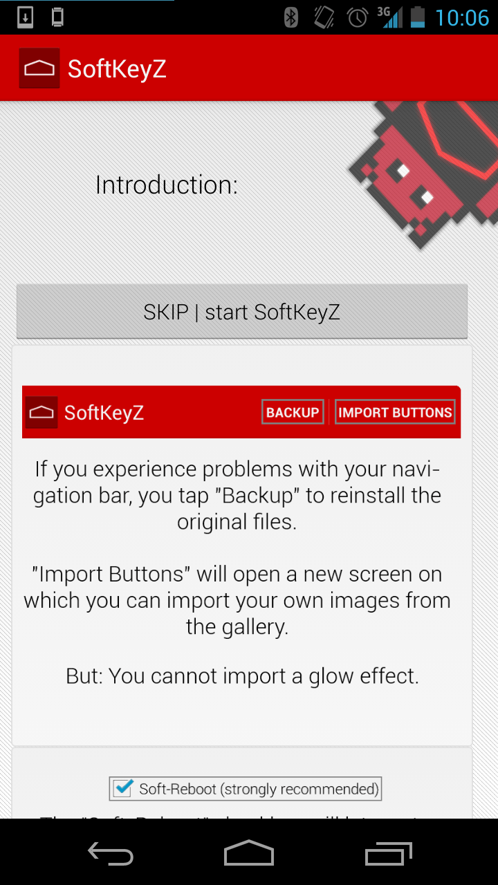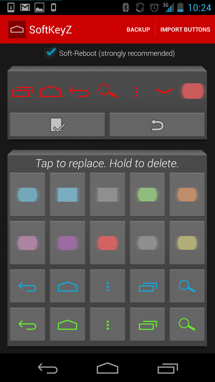 Für Besitzer von Smartphones mit virtuellen Navigations-Tasten, auch Soft-Keys oder Soft-Buttons genannt, ist diese App eine tolle Sache. Denn wer ein gerootetes Galaxy Nexus oder Nexus 4 sein Eigen nennt, kann mit SoftKeyZ sehr einfach über 150 verschiedene, virtuelle Navigations-Tasten installieren. Die Tasten lassen sich außerdem farblich anpassen und somit noch weiter individualisieren.