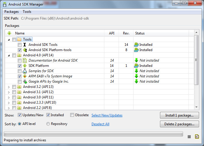 - Android SDK Manager downloaden und  installieren (ca. 34 MB).