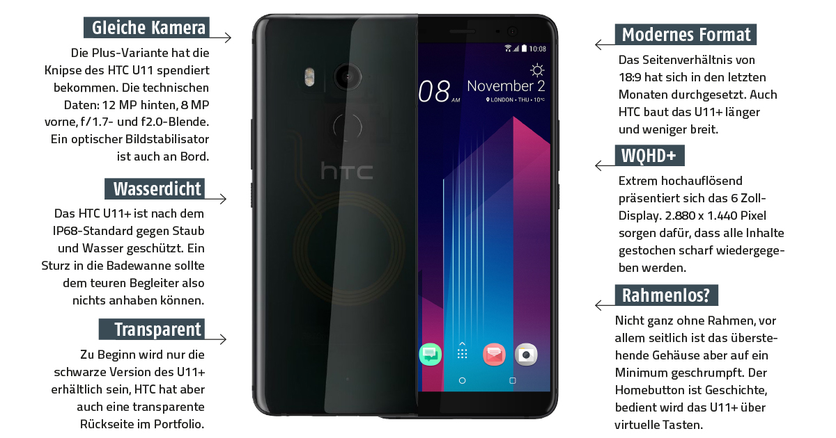 HTC springt als letzter der großen Hersteller auf den Zug auf und präsentiert ein 6 Zoll-Monster im 18:9-Format. Den einzigen Punkteabzug gibt es für das Problem mit der Helligkeit. Aber auch damit ein Top-Smartphone!