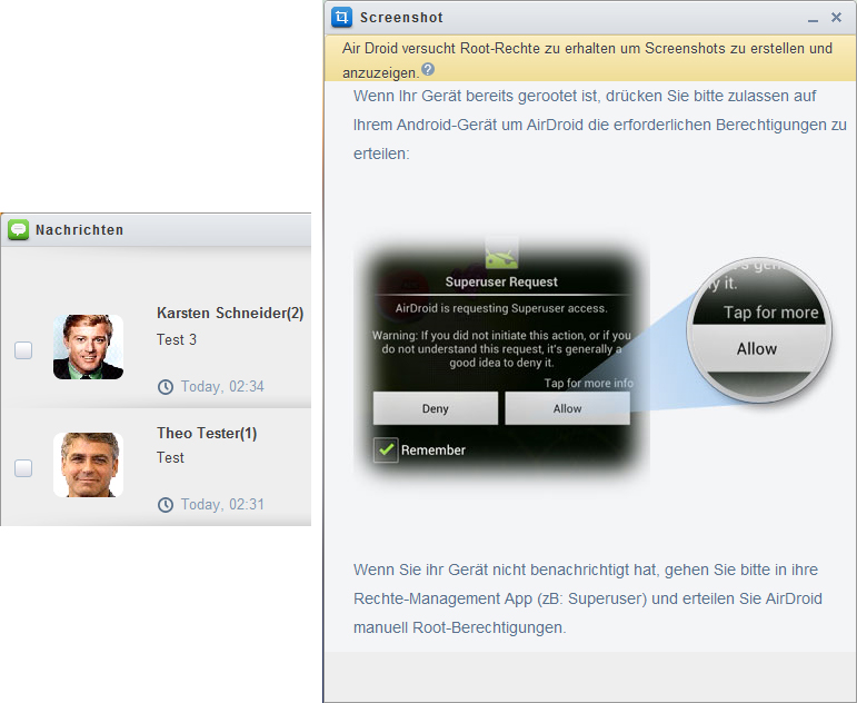 Dank der App AirDroid könnt ihr vom PC aus per WLAN statt über ein USB-Kabel auf die Daten des Smartphones zugreifen. Die beiden Geräte müssen sich dazu im selben Netzwerk befinden.