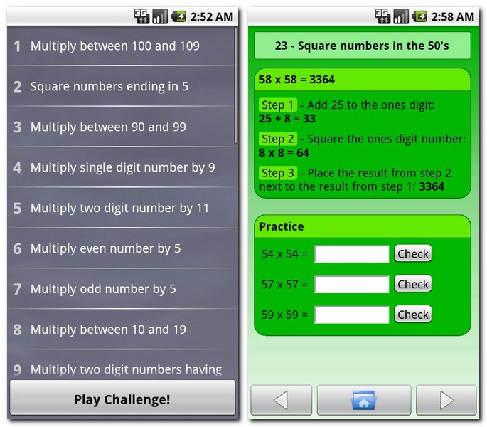 Wer andere mit Rechenkünsten beeindrucken möchte, greift zu dieser App, um sich selbst einige Mathematik-Kunststückchen anzueignen. Was dies außer dem einen oder anderen Brainjogging- Effekt bringt, liegt sicherlich im Dunklen des menschlichen Ehrgeizes verborgen. Zu Schulzeiten des Autors galten Mathe- Cracks als Streber und waren Top-Kandidaten für Klassenkeile.