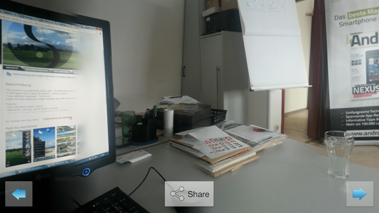 Mit dieser App ist es sogar möglich, Animationen mit 360 Gradansichten von Landschaften oder Gebäuden zu erstellen. Diese lassen sich ganz einfach auf Facebook, Google Plus, Twitter und Co. mit deinen Freunden teilen.