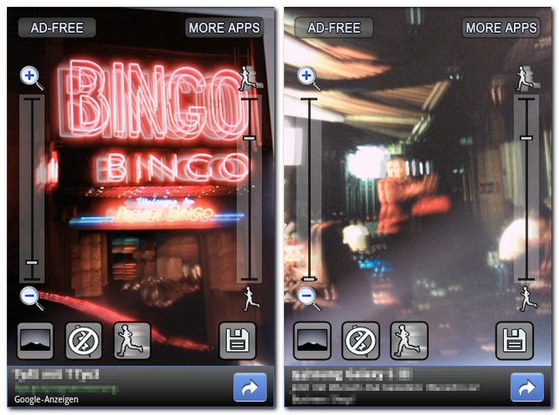 Leider aber wirkt sich die Funktion der Software wirklich nur auf das Live-Bild der Kamera aus. Bereits aufgenommene Fotos kann man mit dem Programm nicht bearbeiten. Ebenfalls wichtig: Damit die App nicht zu träge reagiert, sollte das Smartphone über einen relativ schnellen Prozessor verfügen. Unter dem Namen Motion Camera Ad-Free ist auch eine kostenpflichtige Version des Programms (1,22 €) erhältlich, die keine Werbung anzeigt.