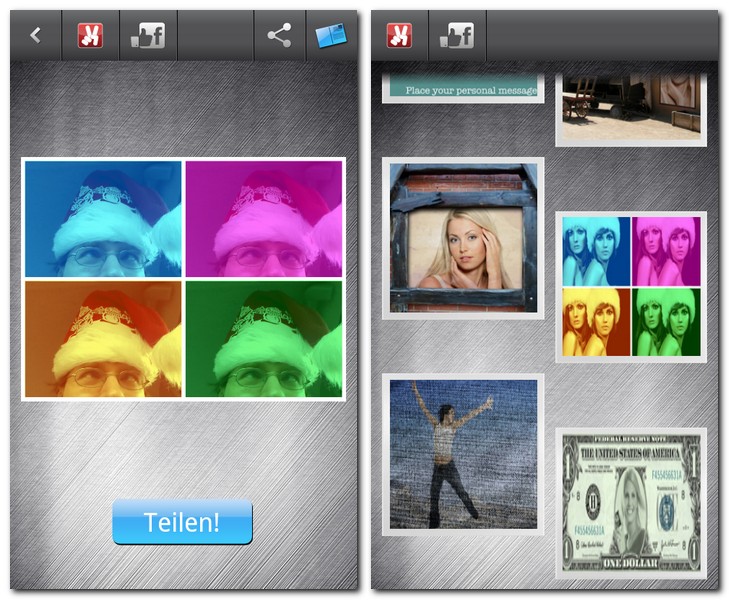 Pingeliger Portrait-Profi. Eine schöne Idee, derzeit allerdings nur halbherzig umgesetzt. Abstürze, fehleranfällige Facebook-Integration und fehlende Bildanpassungsmöglichkeiten (wie Rotation oder Bildgröße) sind an der Tagesordnung, zudem scheint die App Galeriefotos nur scheinbar willkürlich zu laden und stellt sich sonst einfach tot. Da hilft dann auch der gut gemachte Postkartenmodus nicht mehr viel.