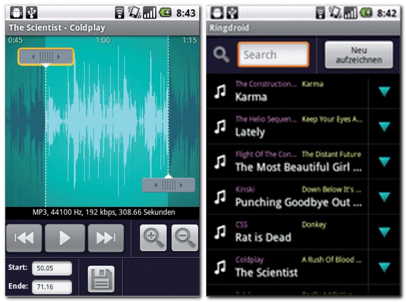 Mit Ringdroid schneidest du deine MP3’s direkt auf dem Android-Smartphone so zu, wie du es gerne möchtest. (kostenlos)