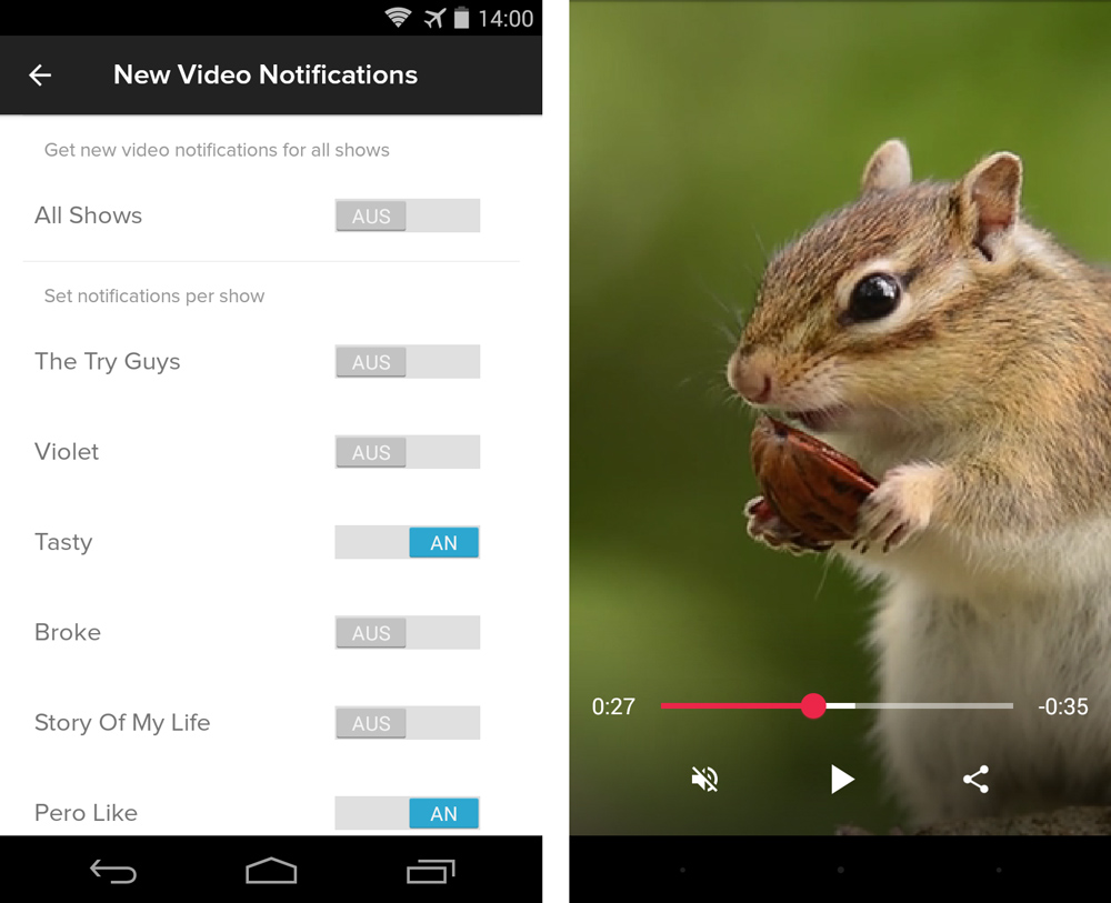 Die App listet einerseits diejenigen Videos auf, die bei den Zuschauern derzeit besonders beliebt sind. Andererseits kannst du dir die Videos auch nach Serien sortiert auflisten lassen. Mittlerweile gibt es 27 Videoserien bei BuzzFeed. Diese Serien widmen sich unter anderem Parodien, Sketchen und Streichen, beschäftigen sich aber auch beispielsweise mit dem Zubereiten von leckeren Gerichten, geben Haar-Styling-, Makeup- und Mode-Tipps und vergessen natürlich auch das Thema Beziehungen nicht. Anders als die Artikel, die teilweise auch in deutscher Sprache vorliegen, sind die Videos englischsprachig. Die Länge der Videos variiert meist zwischen einer Minute und vier Minuten.