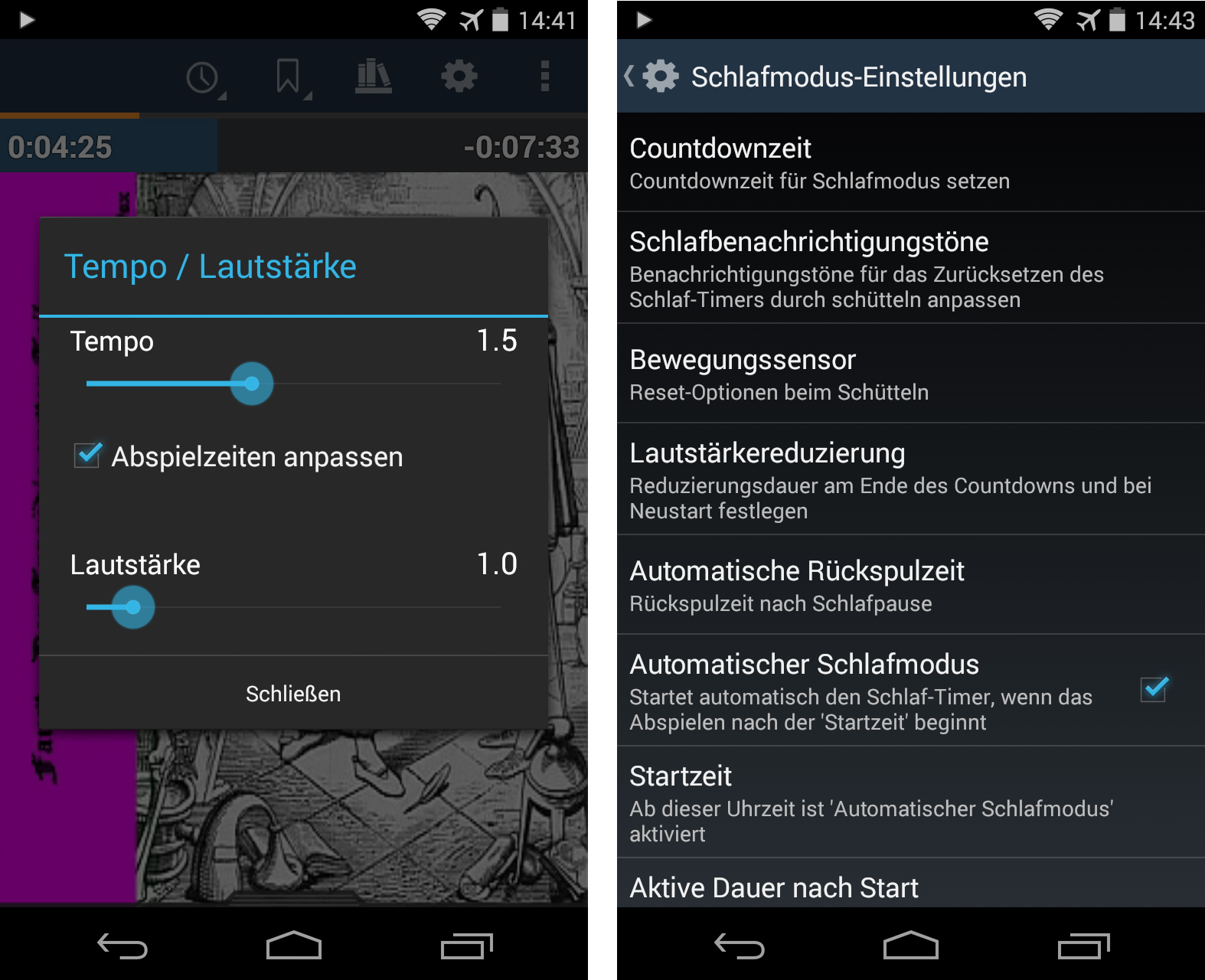 Die Einschlaffunktion sorgt dafür, dass die App mit dem Wiedergeben des Buches aufhört, wenn du dich eine bestimmte Zeit lang nicht mehr bewegt hast.