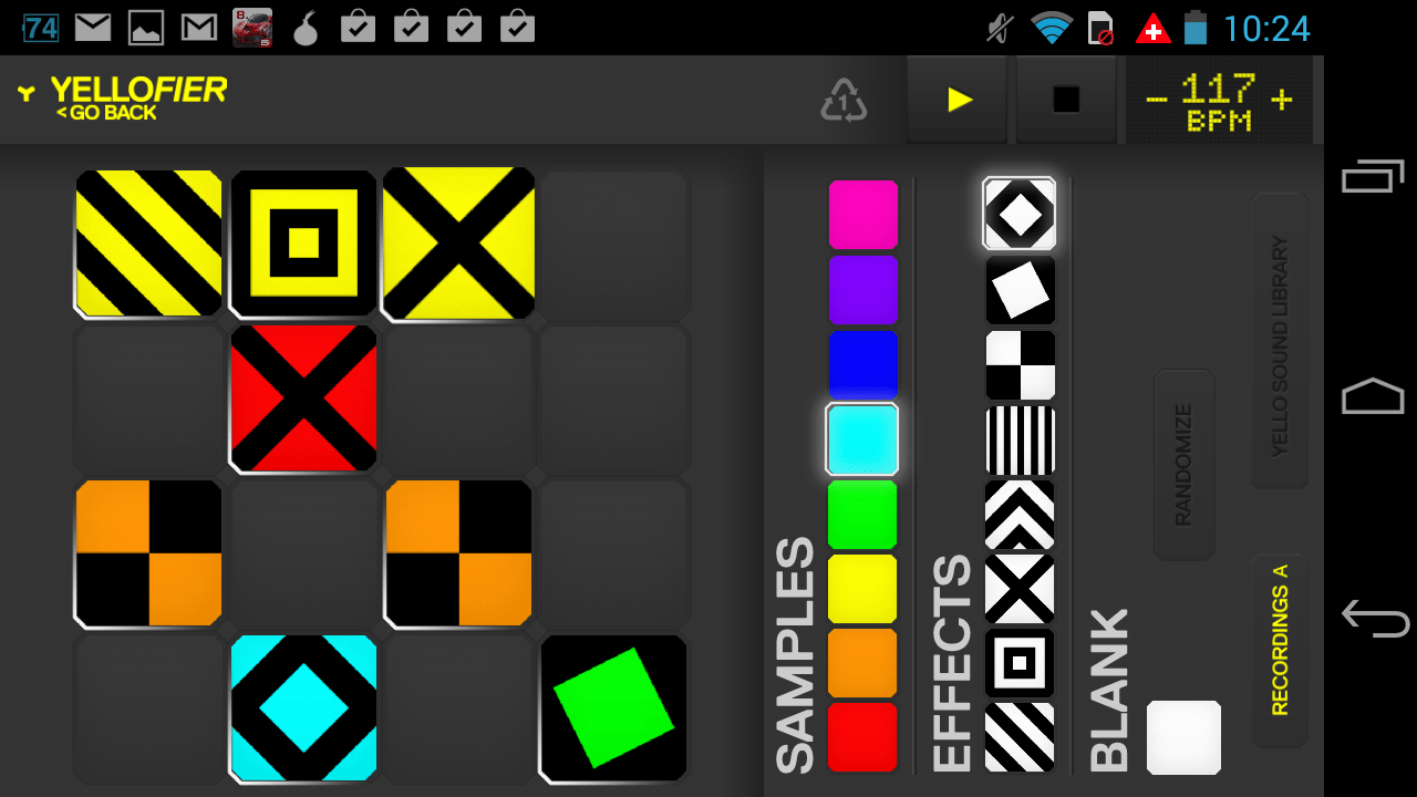 Yellowfier ist Drumcomputer, Sequenzer und Sampler in einem. Mit Hilfe der App kannst du zum Beispiel Umgebungsgeräusche sampeln und anschließend mit typischen Yello-Sounds und Effekten verfremden, etwa mit Hall, Echo oder Phaser. Natürlich kannst du auch selbst produzierte Geräusche aufnehmen und daraus Musik machen.