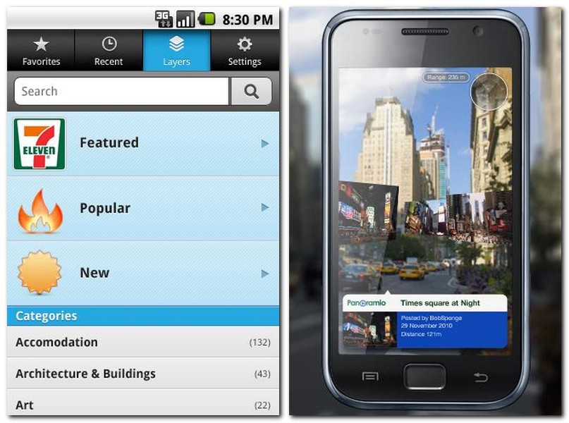 Immer sofort erkennen was unsere Umgebung zu bieten hat, seien es Bauwerke oder einfach nur die beste Pizzeria. Kein Problem, dank Layar. Oder doch ein Problem? (kostenlos)