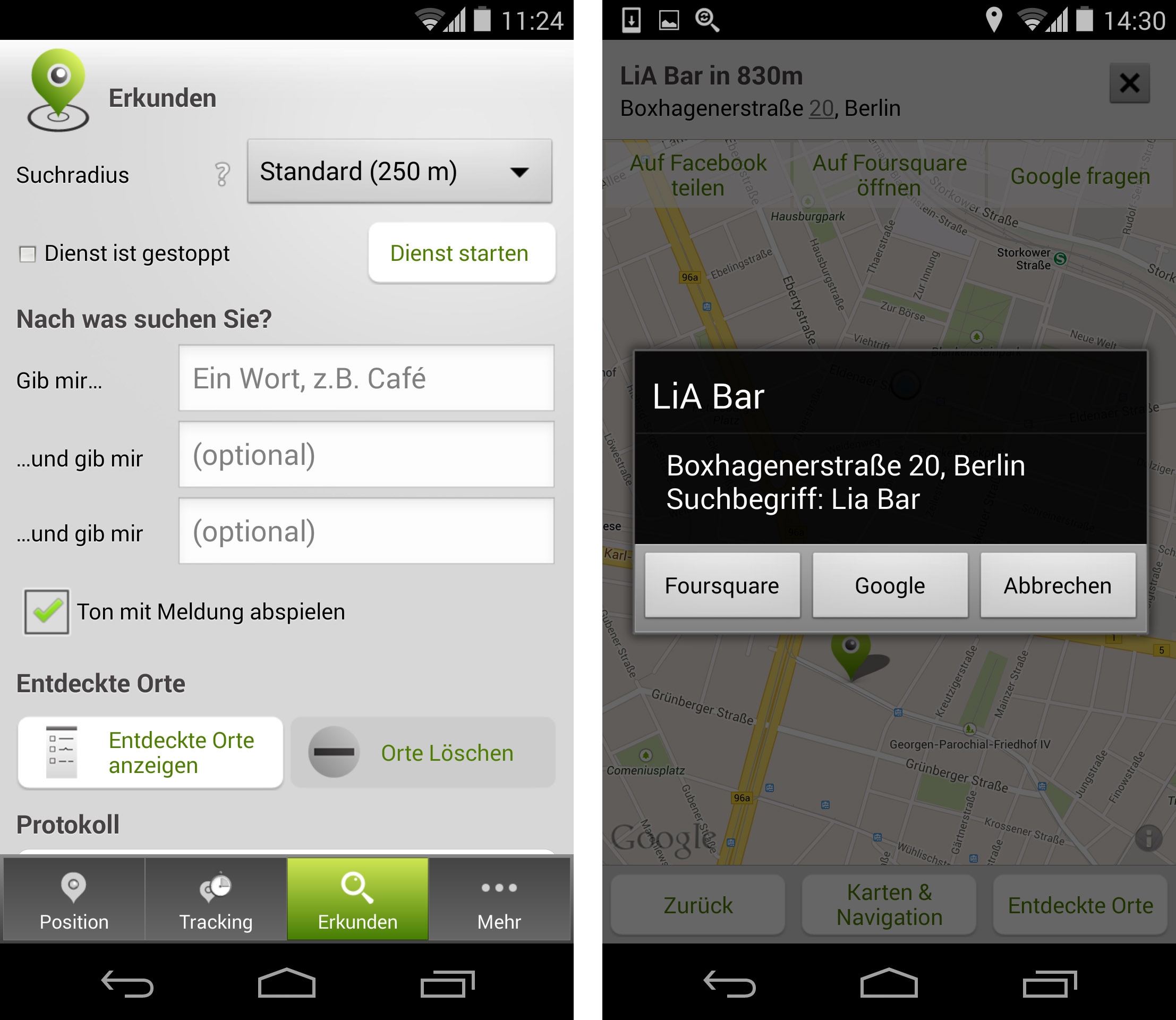 Auch wenn Sie sich in einer fremden Stadt aufhalten, müssen Sie nur ein paar Schlüsselbegriffe eingeben und die Erkundungs-Funktion führt Sie punktgenau zu den interessanten Plätzen. Besonders interessant ist das in die App eingebaute Radar. Es durchsucht Ihre Umgebung automatisch nach für Sie bedeutenden Objekten. Das ist immens hilfreich, wenn Sie in einer für Sie neuen Gegend spazieren gehen und z.B. nach einem Club suchen: sobald ein Tanzschuppen in Reichweite ist, meldet sich das Programm unüberhörbar!