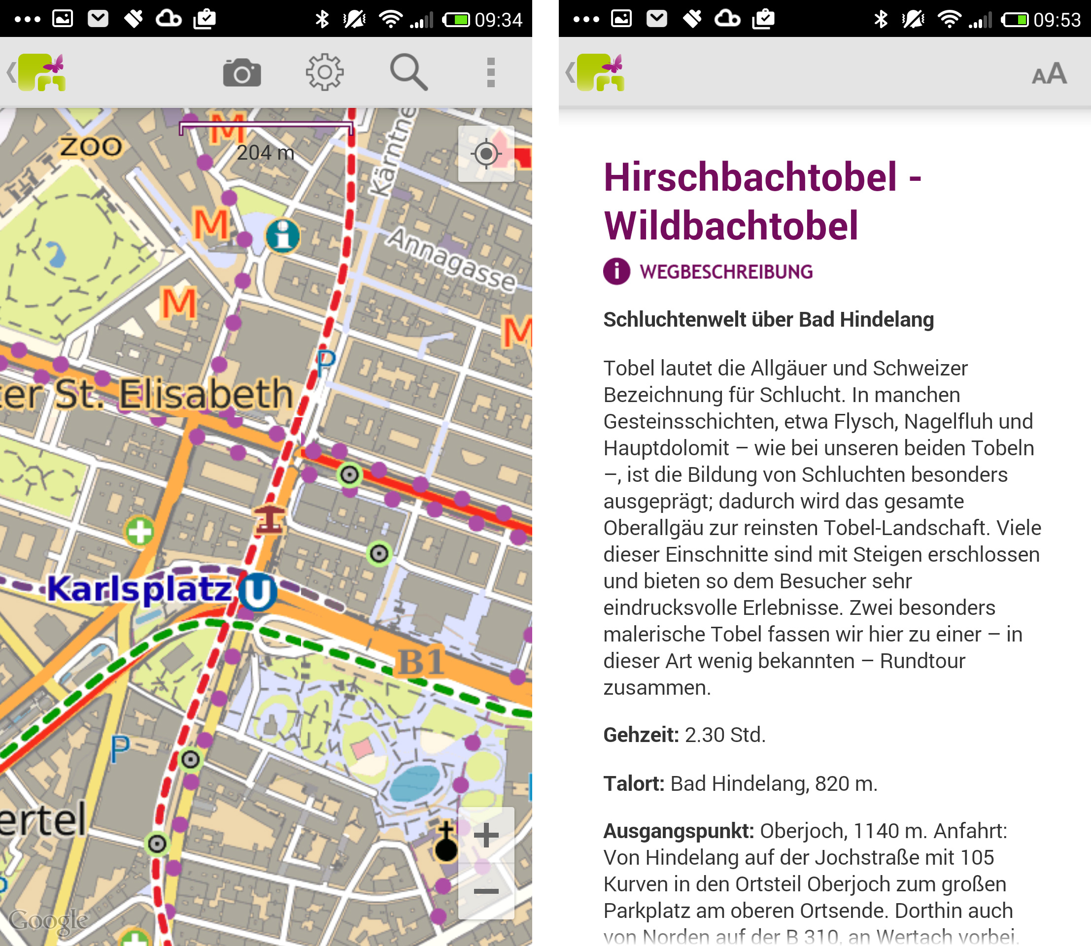 Der Preis für eine komplette Stadtkarte liegt bei einem Euro, Wanderkarten können Sie für drei Euro downloaden.