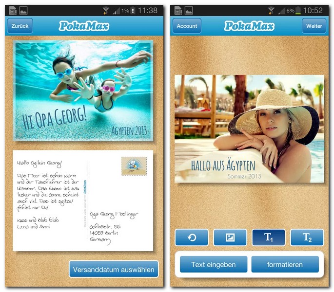Wer es sich im Urlaub gut gehen lässt, möchte natürlich auch seine Lieben mit Ansichtskarten daran teilhaben lassen. Diese Grüße lassen sich mit PokaMax komfortabel vom Smartphone aus versenden. (kostenlos)