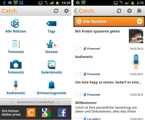 Mit der App Catch hat man stets einen virtuellen Notizblock via Smartphone parat. (kostenlos)