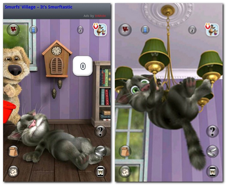 Lebte Kater Tom in Teil 1 noch auf der Straße, darf man in der Fortsetzung das lustige Plappermaul nun in seinem Wohnzimmer streicheln, drangsalieren oder einfach alles nachplappern lassen. Außerdem kann man Tom’s Freund Ben, den lästigen Hund, ins Geschehen rufen. Er lässt dann auf Knopfdruck eine Tüte zerplatzen und Schwupps, hängt der erschrockene Tom auch schon am Kronleuchter. Oder Ben furzt auf Befehl und Tom hält sich die Nase zu. Spricht er übrigens mit zugehaltener Nase hört sich das doppelt komisch an.