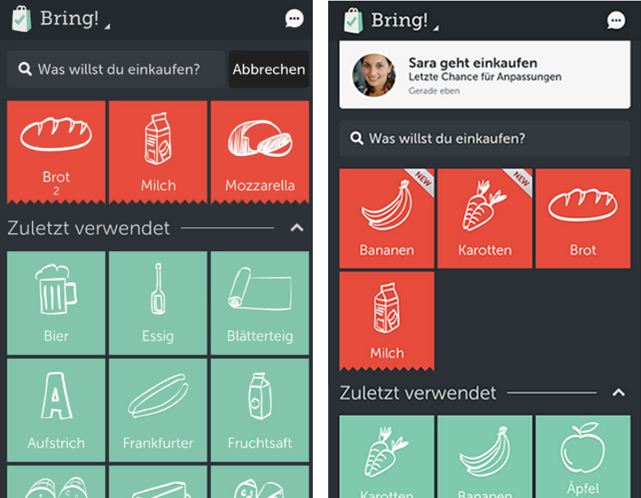 In Haushalten mit mehreren Mitgliedern kann die Verwaltung der Einkäufe mitunter kompliziert werden – wer bringt die Milch mit? Haben wir noch Seife Zuhause? Die App „Bring! Einkaufsliste“ will den Alltag in dieser Hinsicht vereinfachen: Eine Einkaufsliste kann zwischen mehreren Benutzern geteilt und von allen jederzeit bearbeitet werden – die App ist plattformübergreifend erhältlich.