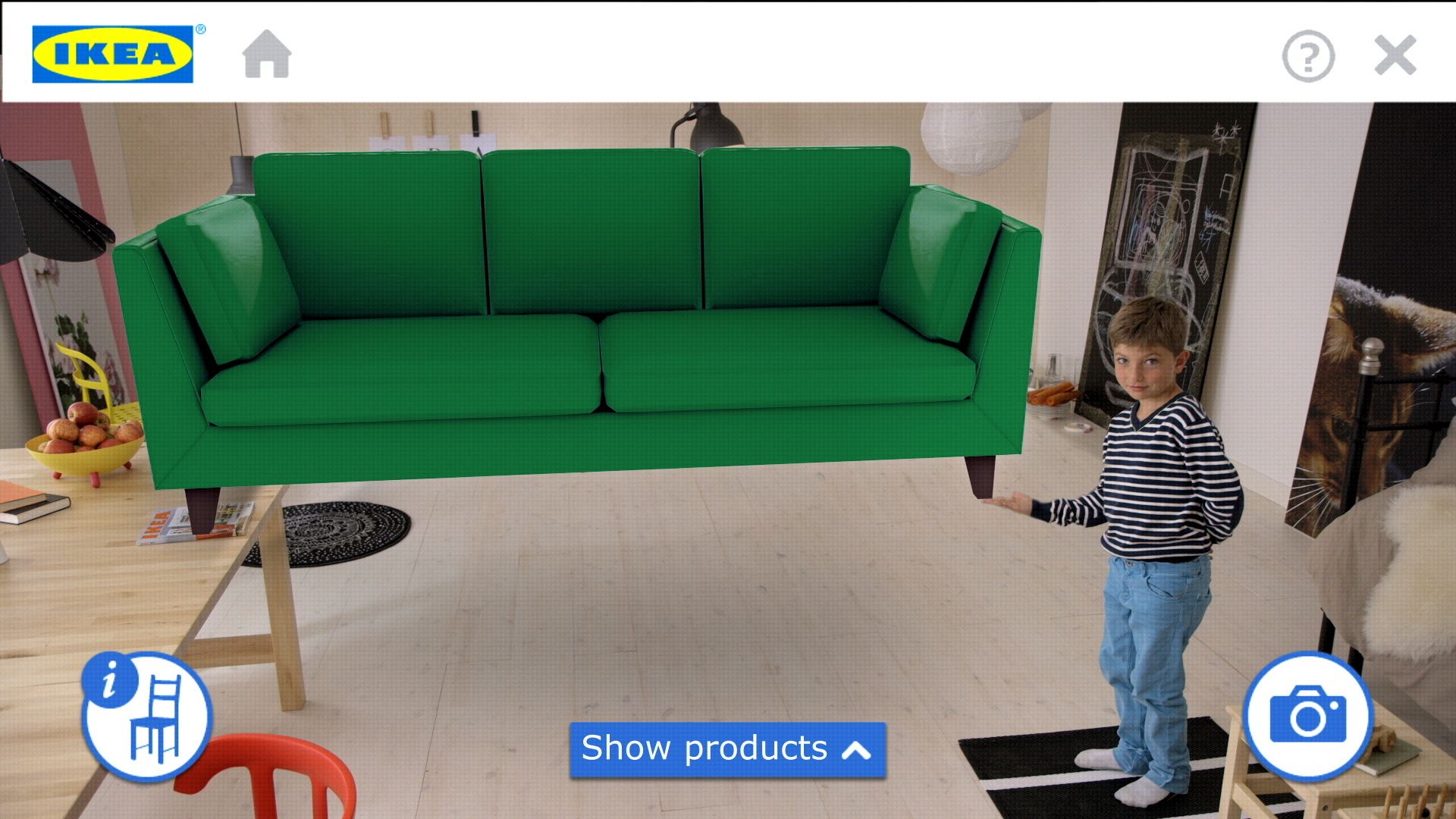 Wenn Sie den aktuellen IKEA Katalog 2014 in der Printversion besitzen, können Sie mit einer speziellen Augmented Reality-Funktion bestimmte Seiten aus dem Printkatalog scannen und 88 Möbelstücke virtuell im Raum platzieren. Somit sehen Sie sofort, wie gut ein Sofa, Bett oder Tisch in den Raum passen. Die App bietet also alleine oder in Kombination mit dem Printkatalog einen echten Mehrwert.