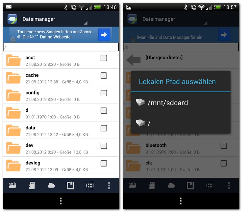Die Macher von FolderSync haben sich offenbar daran gestoßen und präsentieren mit der App eine praktikable Lösung, die sämtliche Dateien und Speichermedien in einem einzigen Dateimanager übersichtlich verwaltet. Auf diesen Weise kannst du Daten wie Musik, Bilder oder Dokumente ohne großen Aufwand kopieren bzw. ausschneiden und an anderen Orten wieder einfügen, unter anderem auch in den angebundenen „Speicherwolken“. Natürlich kannst du auch die Ordner- und Dateinamen komfortabel ändern und Informationen, wie zum Beispiel die Dateigröße oder das letzte Änderungsdatum, abrufen. Und letztlich lassen sich nicht mehr benötigte Daten direkt von der App aus entfernen.