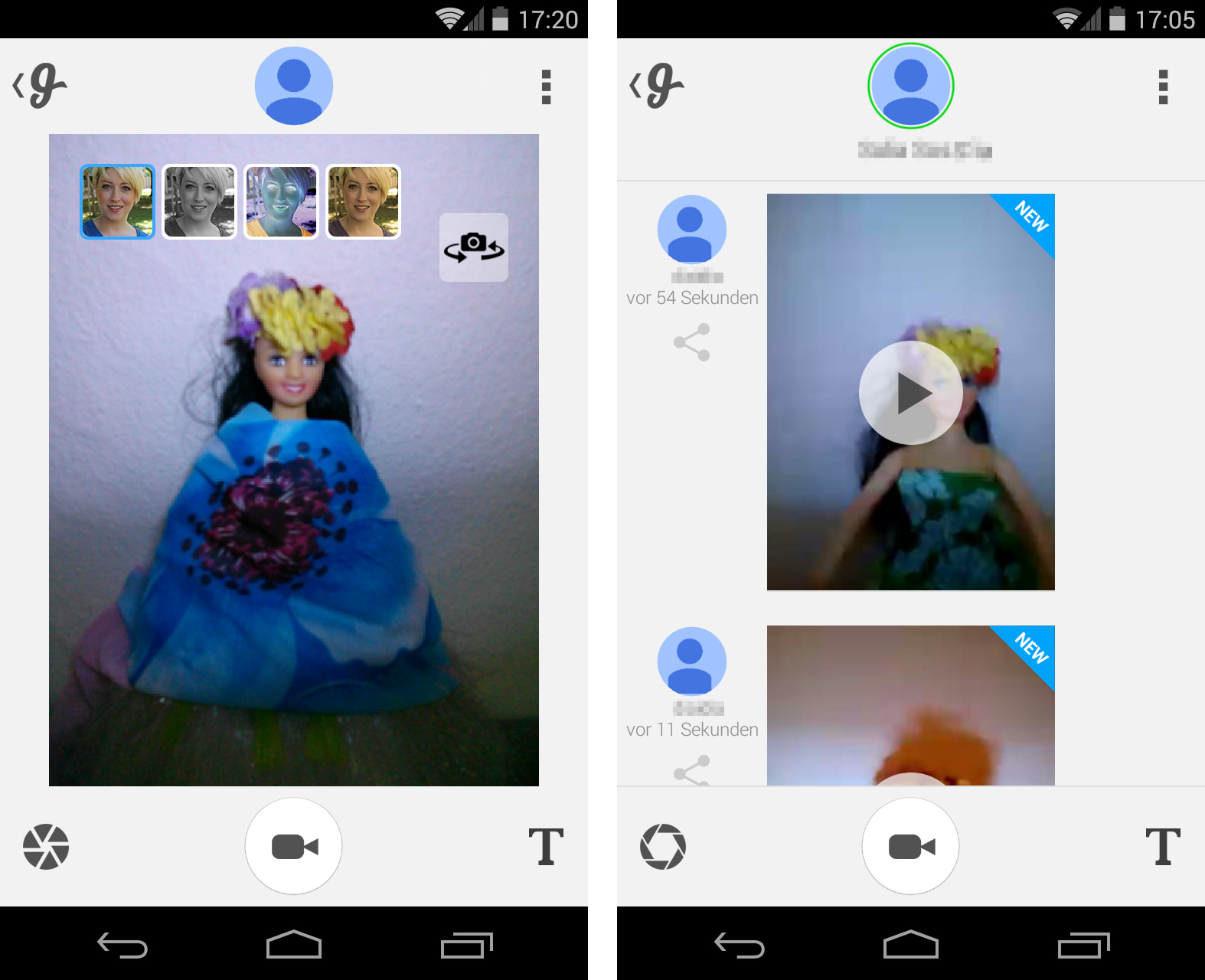 Du kannst die versendeten und empfangenen Videos auch nachträglich betrachten. Wenn ein Absender eines seiner Videos löscht, dann ist es jedoch auch für alle Empfänger nicht mehr verfügbar. Gut für Videos delikaterer Natur.