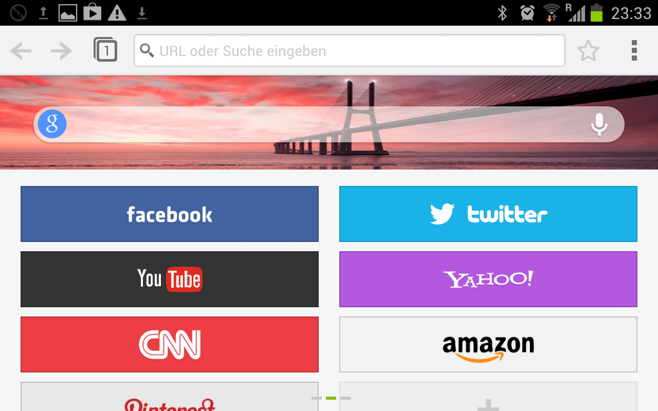 Beim Startbildschirm ließ sich die Truppe offensichtlich von Opera Mini inspirieren – dort abgelegte Lieblingswebseiten lassen sich mit nur einem Klick erreichen.