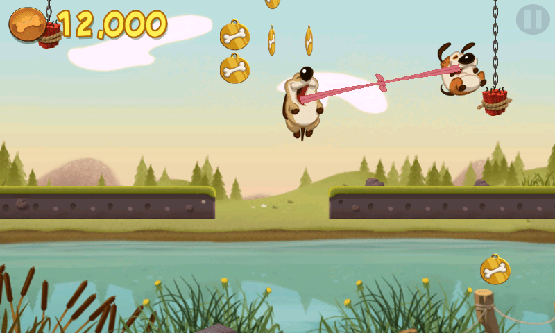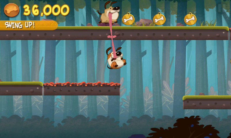 Dieses zu erhaschen ist aber nicht immer einfach, denn die beiden hundischen Freunde laufen unentwegt geradeaus, völlig egal was vor oder hintern ihnen liegt. Auch wenn man also nach den ersten beiden Levels die kuriose Mischung aus Plattformer und Reaktionsspiel angenommen hat, reicht das gerademal um husch-pfusch durch die Level zu eilen. Damit vermiest man sich aber den besten Part des Games, nämlich den wunderbaren Genuss, jeden Level mit einer goldenen Hundemarke abgeschlossen zu haben.