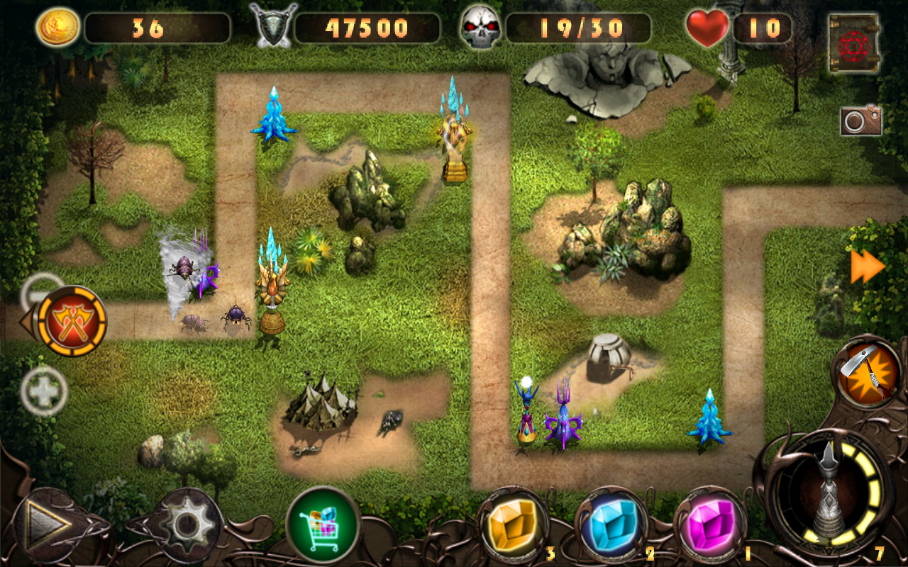 Je nach abgelegten Elementen entwickelt sich der Turm zu einer anderen Art von Einheit. Manche Gebäude dienen nur dem Angriff, während sich andere auf die Unterstützung der sie umgebenden Strukturen spezialisiert haben. Eine übersichtliche Hilfefunktion zeigt dir den Weg – Rätselraten ist in „Epische Defense 2- Wind Spells“ absolut unnötig.