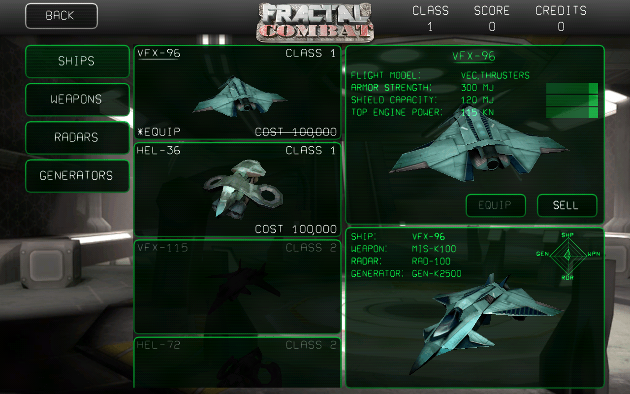 Fractal Combat belohnt das erfolgreiche Erledigen der diversen Missionen mit Credits. Diese darfst du im spieleigenen Shop in Upgrades und neue Flugzeuge investieren. Dabei erfreut der Titel mit Komplexität: neben komplett neuen Luftfahrzeugen gibt es auch die Möglichkeit, einzelne Komponenten des Vehikels zu aktualisieren.