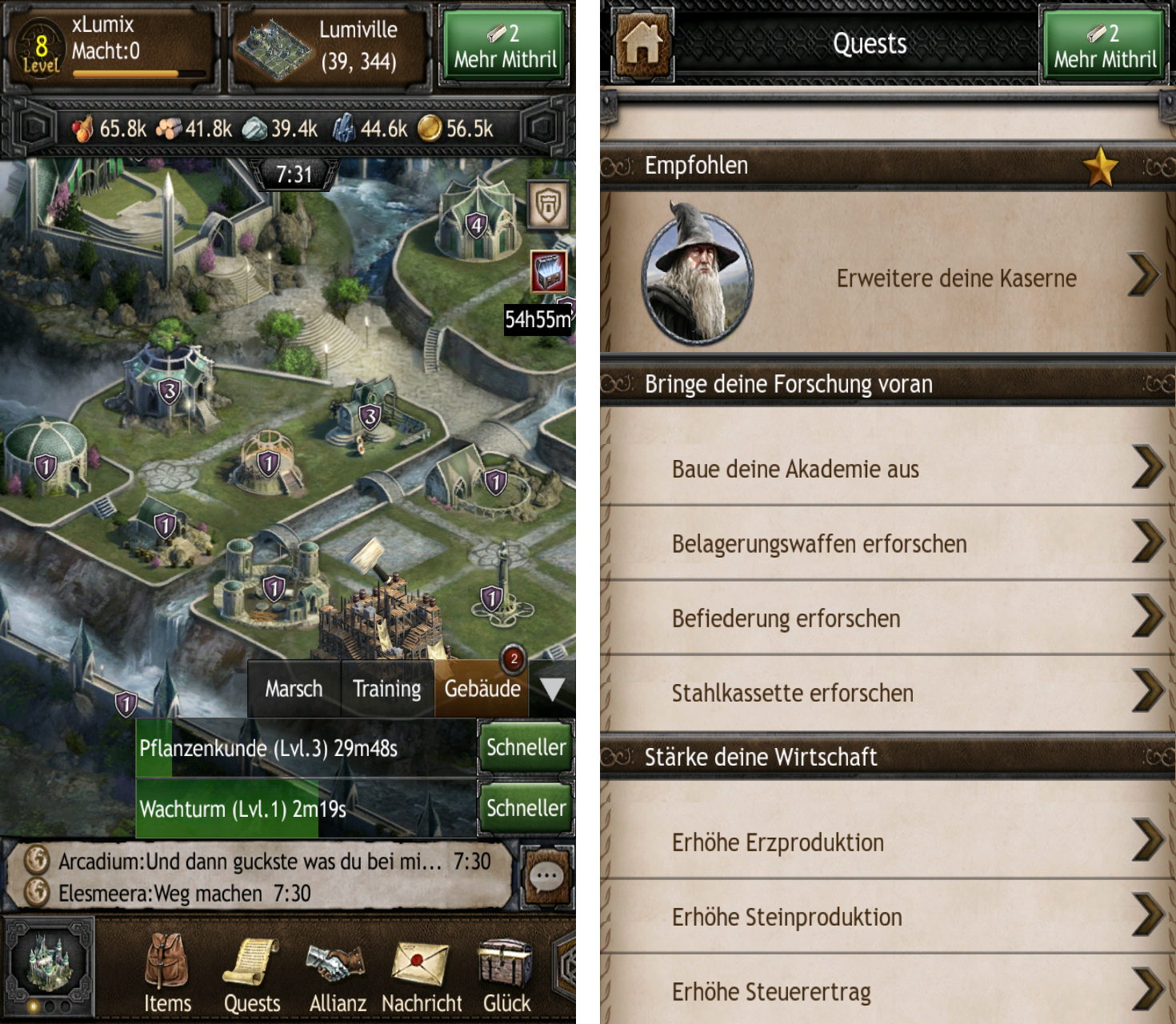 Dieses Massive Multiplayer Online-Spiel ist vor allem für die „Herr der Ringe“- Fans unter euch ein Muss. Zu Beginn könnt ihr euch für die Elben oder Zwerge entscheiden – beide Rassen haben ihre Vorzüge. Im Spiel habt ihr dann die Aufgabe eure Stadt aufzubauen und Einheiten auszubilden. Mit letzteren lassen sich die gegnerischen Städte angreifen. Da es sich um ein Multiplayer-Spiel handelt, gibt es auch andere Spieler, die versuchen werden, euch anzugreifen und euch die wertvollen Rohstoffe abzujagen. Natürlich dürft ihr nicht auf die Forschung vergessen. Forschung und der Ausbau von Gebäuden nehmen allerdings neben Ressourcen auch Zeit in Anspruch. So dauert zum Beispiel der Bau von einem Haus nur wenige Sekunden, während der Ausbau des Burgfrieds einige Stunden in Anspruch nehmen kann. Die Quests, welche es zu erfüllen gilt, sorgen für Langzeitmotivation, da man für das erfolgreiche Abschließen eine Belohnung erhält.