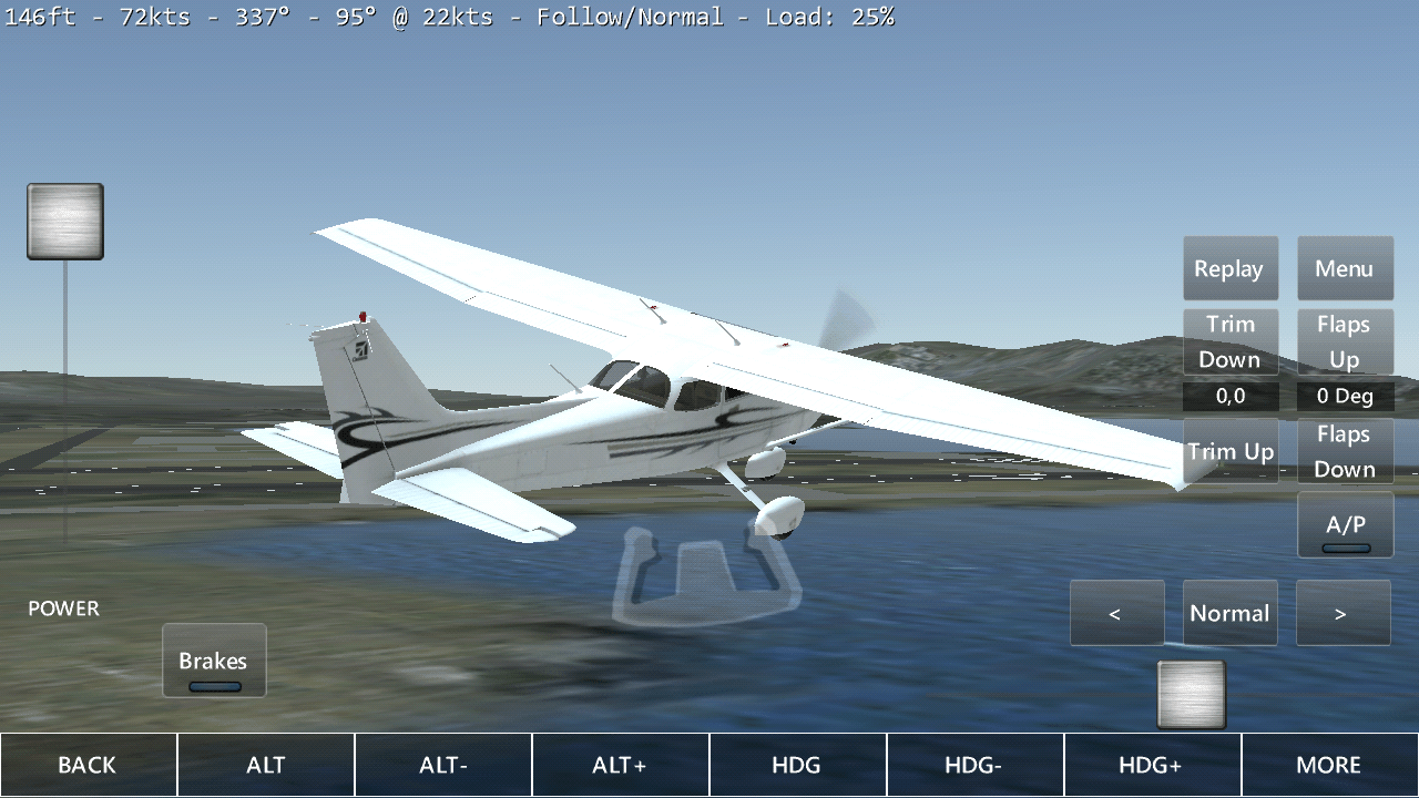 Anders als bei vielen ähnlichen Vertretern dieses Genres gilt es bei Infinite Flight nicht, gegnerische Flugzeuge vom Himmel zu holen oder sonstige Aufträge zu erfüllen. Du kannst das Abheben und die Landung üben, dazwischen fliegst du wie und wohin du willst. Mitunter wird das in den Weiten der virtuellen Welt ein wenig langweilig, weshalb du jederzeit einen „Short Final“-Button auswählen kannst – du wirst dann automatisch an den Zielflughafen gebeamt und musst nur noch sicher landen. Klingt einfach, in der Praxis ist es das aber nicht. Damit dich der Mut nicht zu schnell verlässt, kannst du bei Crashes sofort wieder um 20 Sekunden zurückspringen und das Manöver erneut versuchen.