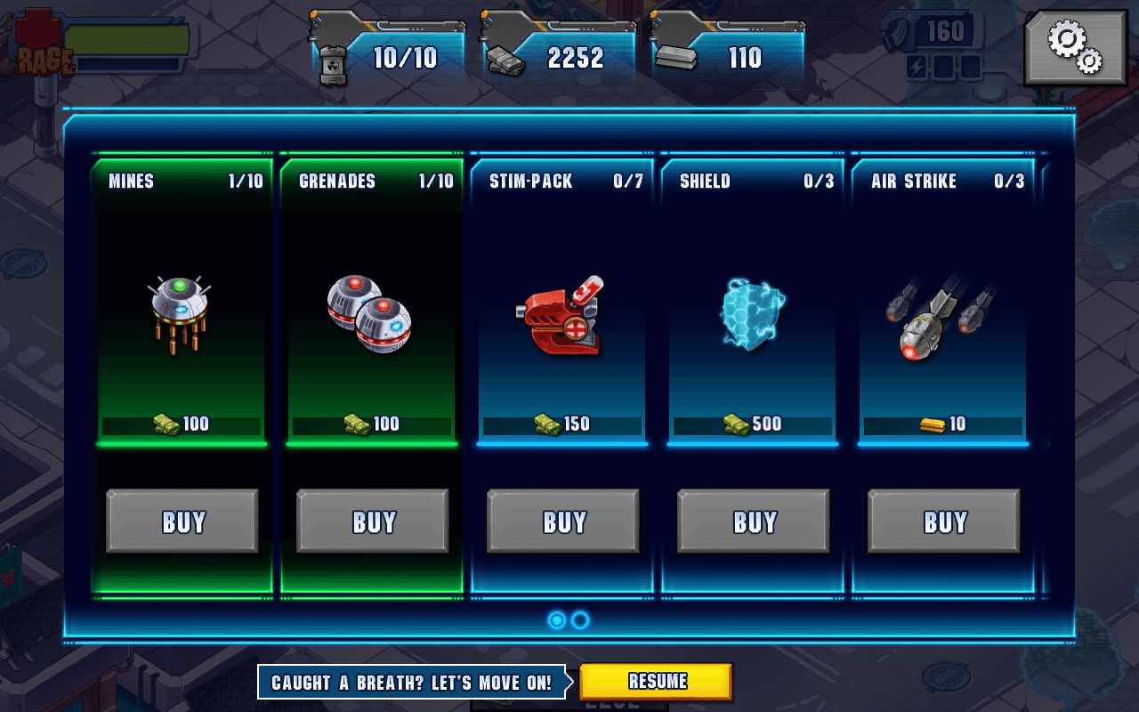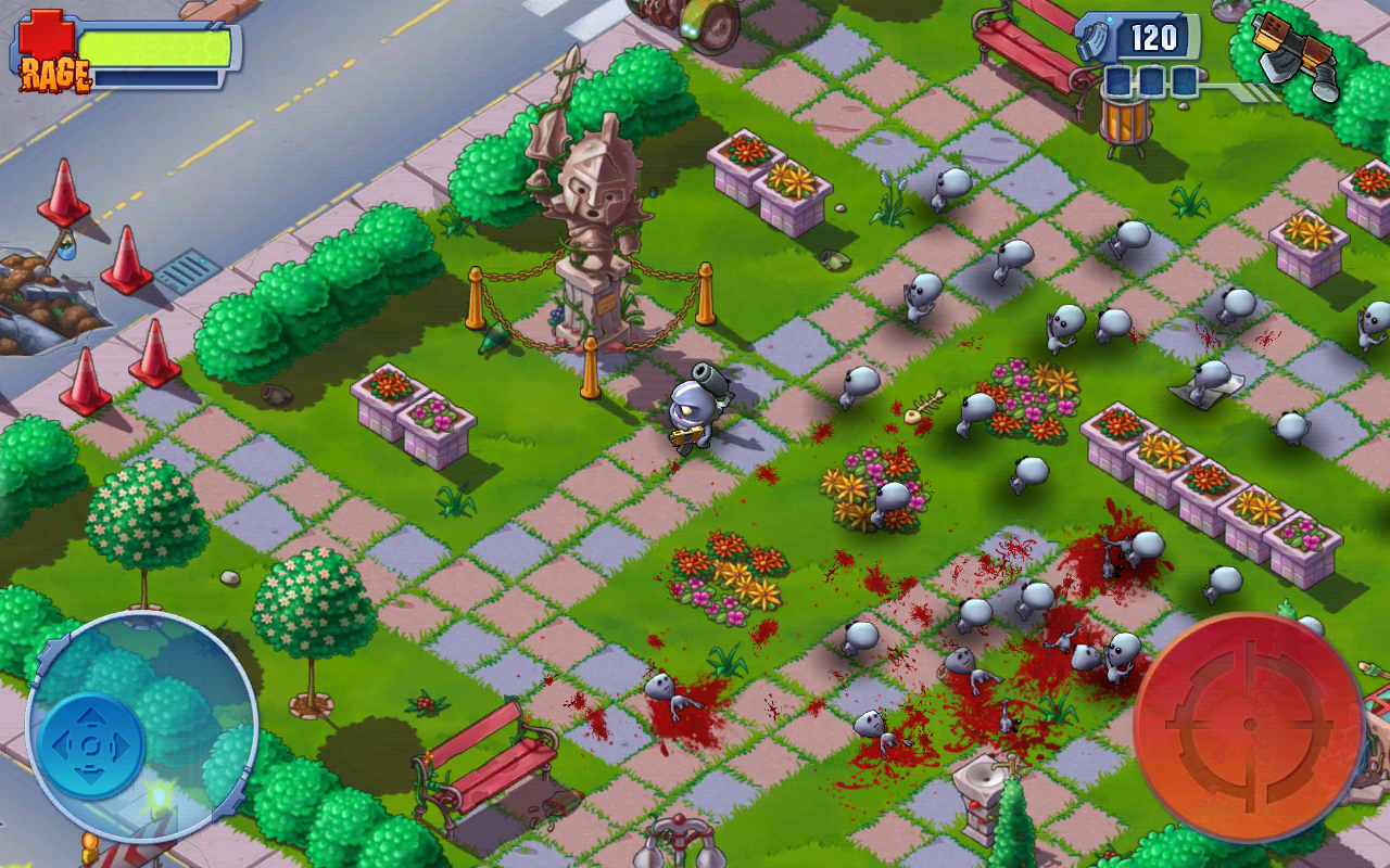 Die Steuerung des Games ist beinahe genial. Der linke Daumen regelt die Bewegungsrichtung, der rechte die Feuerrichtung deines Alter Egos. Auf den Seiten der Steuerkreuze erscheinen diverse Widgets, die das Auslösen von besonderen Waffen ermöglichen.
