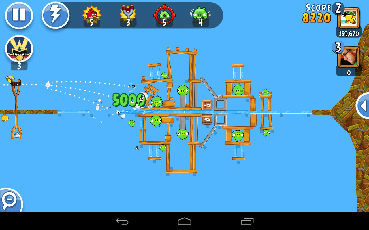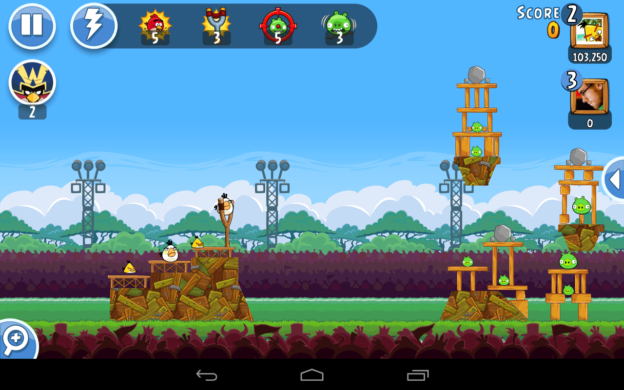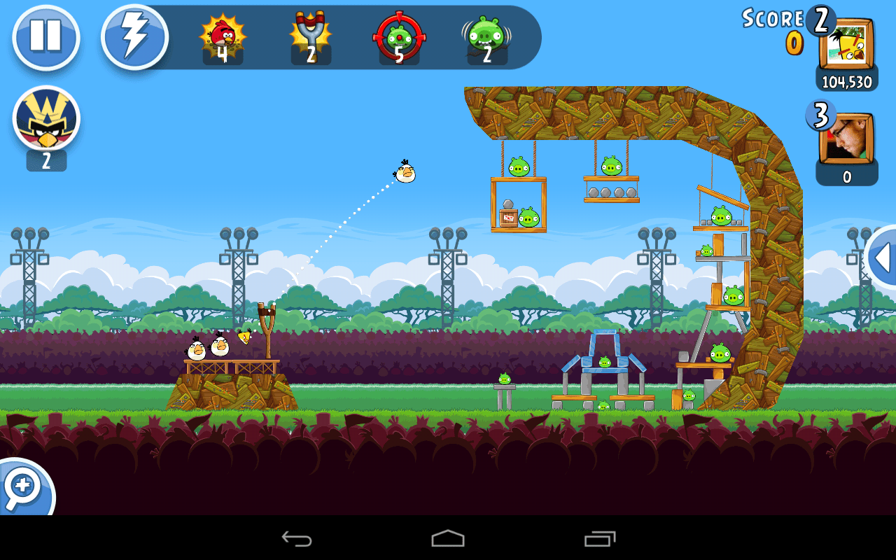 Wer die Vorgänger kennt, wird sich im anfänglichen, verpflichtenden Tutorial pudelwohl fühlen. Das Ziel des Spiels ist es wie gehabt mit einer Art Steinschleuder verschiedene Vögel abzufeuern und damit die feindlich gesinnten grünen Schweinen und deren Bauwerke zu zerstören. Dazu wird der Vogel in der Schleuder mit dem Zeigefinger ein wenig nach links bewegt und Schwupps: Schon rast der „Angry Bird“ mit Vollgas gen Gegner. Neben den verschiedenen Vogelarten, gibt es diesmal aber auch vier Power-Ups, die in begrenzter Stückzahl vorhanden sind und mit speziellen Ingame-Münzen neu erworben werden können.