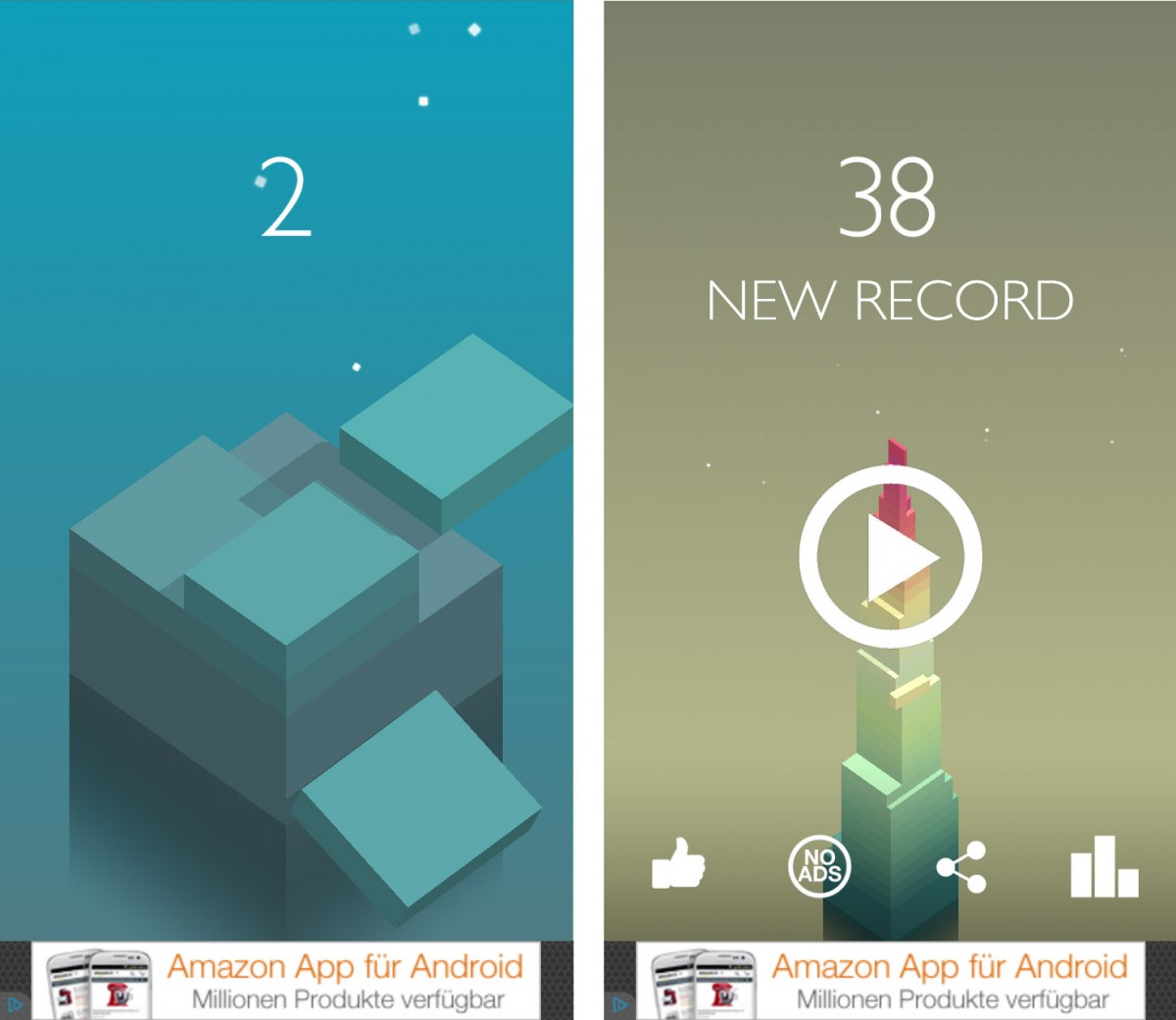 Stack ist ein lustiger und auch optisch ansprechender Zeitvertreib, der auch auf etwas schwächeren Smartphones problemlos läuft. Einziger Kritikpunkt: Das Spielprinzip ändert sich nicht, die einzige Motivation ist, den Highscore zu knacken. Hier hätten wir uns noch zusätzliche Spielmodi gewünscht.