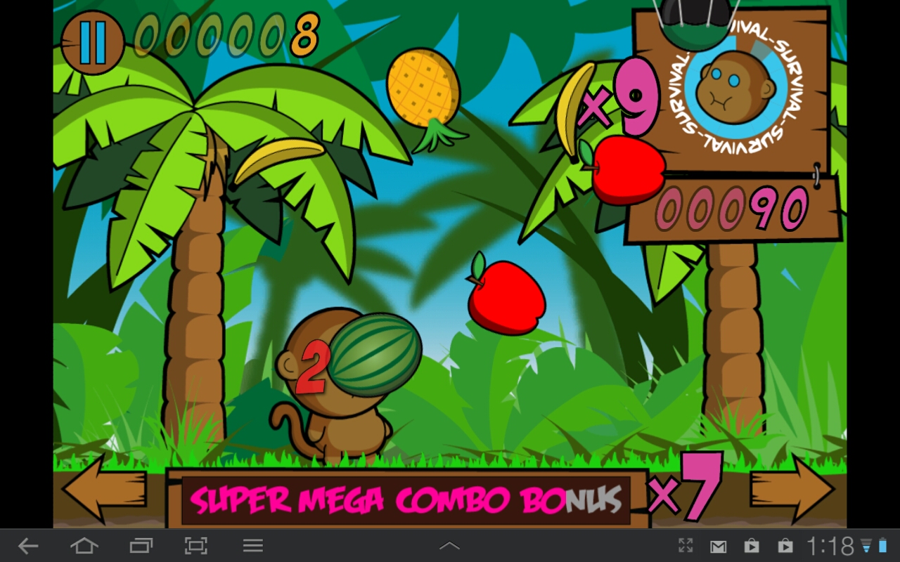 Die Früchte fallen vom Himmel, du musst das Äffchen nur per Fingertipp nach links oder rechts bewegen.