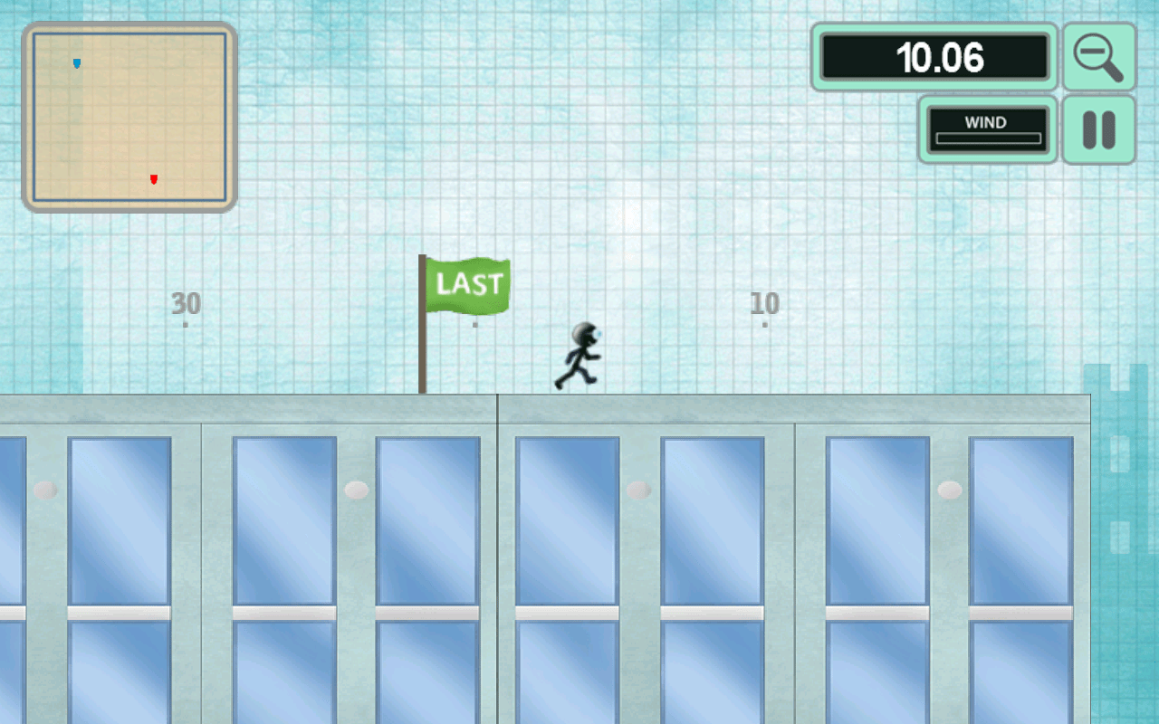 Du musst deinem Alter Ego – ein Strichmännchen – beim Erledigen der diversen Sprungaufgaben assistieren. Im ersten Schritt musst du dafür sorgen, dass der Absprung genau getimt erfolgt: die Fluggeschwindigkeit der Figur beeinflusst du, indem du die Länge des Anlaufs bestimmt.