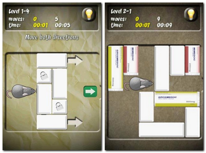 Wieviel man aus diesem an sich simplen Konzept herausholen kann, zeigt sich an der schier unermesslichen Anzahl an Puzzles, mit denen Mouse Trap aufwarten kann. Sage und schreibe 1900 unterschiedliche Herausforderungen wurden in die kleine App gepackt – und ein Ende ist noch nicht in Sicht! Von den einzelnen Levels werden Sie allerdings wenig zu Gesicht bekommen, denn Mouse Trap lebt ganz nach dem Motto “step by step”, weshalb ein neuer Level erst dann verfügbar wird, wenn der alte erfolgreich abgeschlossen wurde. Simples ‘Level-Hopping’ gibt’s also nicht bei Mouse Trap – würde aber wohl auch wenig bringen, wo die Puzzles doch ausschließlich schwieriger anstatt leichter werden.