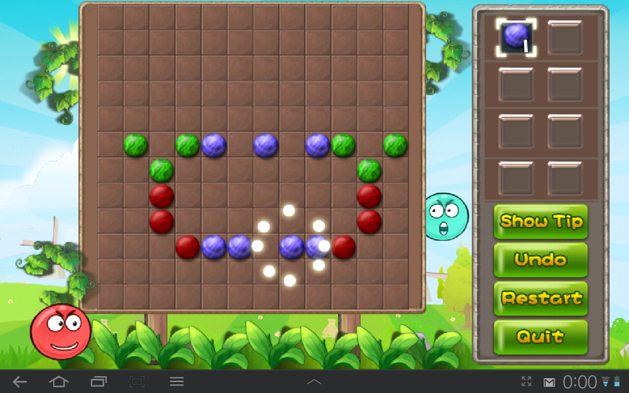 Die Spielsteine, die du zum Füllen verwenden kannst, sind genau im rechten Panel vorgegeben. Da hast du zum Beispiel drei rote und einen blauen Stein zur Verfügung. Legst du den blauen Stein exakt zwischen zwei blaue am Spielfeld, explodieren die drei und schieben einen etwaigen benachbarten roten um ein Feld weiter. Sollte sich dadurch wieder eine Dreiergruppe ergeben, explodiert auch sie und löst unter Umständen eine weitere Kettereaktion aus, usf. Du ahnst vielleicht schon, welch geistige Dimension dies annehmen kann.