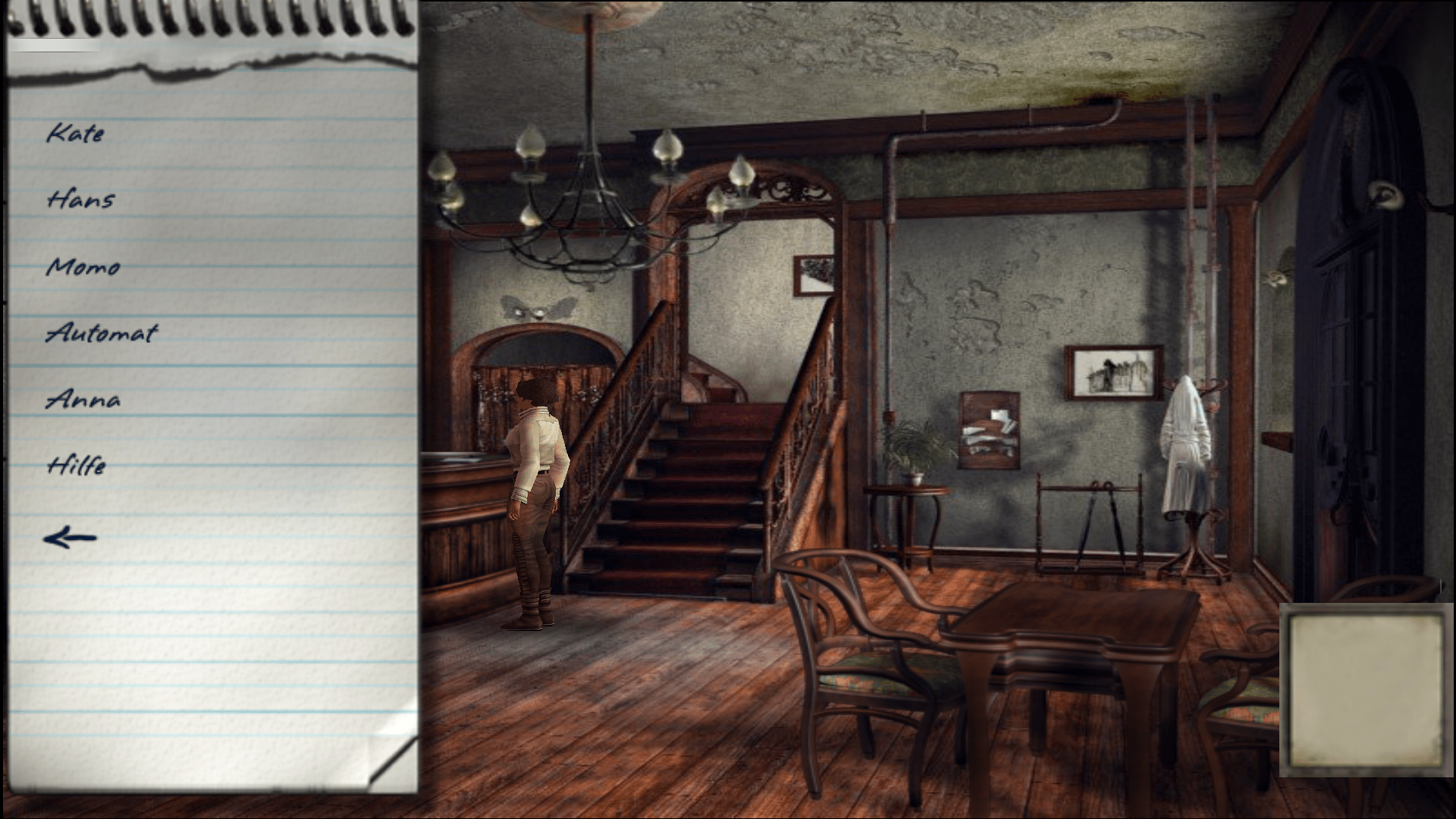 Aus Spannungsgründen stellen wir die Story aber mal hinten an, wir wollen immerhin nicht zu viel verraten. Wenden wir uns lieber der technischen Implementierung zu: Syberia ist grundsätzlich ein Ableger der beliebten Wimmelbild-Spiele, mit dem Unterschied, dass die Geschichte nicht linear vorangetrieben wird – vielmehr triffst du in den verschiedenen Räumen, Städten und Umgebungen Entscheidungen, die sich unterschiedlich auswirken können. Zur Veranschaulichung: Gleich zu Beginn, beim Einchecken, brauchst du den Herrn beim Empfang. Um ihn zu rufen, musst du allerdings die Glocke aktivieren, und das wiederum funktioniert nur, wenn du einen Schlüssel findest. Optional kannst du dich aber dennoch in der Empfangshalle umsehen und die eine oder andere interessante Entdeckung machen.