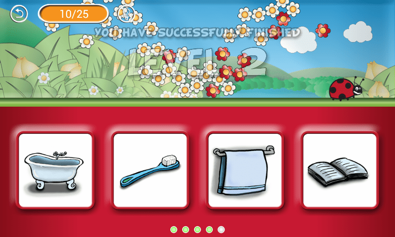 Bei „What’s different“ geht es darum, aus vier Bildern jenes auszuwählen, welches nicht dazu passt. So werden zum Beispiel drei große Bälle und ein kleiner gezeigt. Ein einfacher Tipp auf den kleinen Ball und schon erscheint die nächste Aufgabe. Entscheidet sich der Spieler jedoch für das falsche Bild, erhält er noch eine Chance. Sind fünf unpassende Bilder ausgemustert, erscheint ein Marienkäfer, der auf einer Wiese zu seiner nächsten Station fliegt und der nächste Level ist erreicht. In der kostenlosen Version werden insgesamt fünf Levels geboten, investierst du hingegen € 1,59, steht einem beinahe unbegrenzten Spielvergnügen dank der insgesamt 125 Levels nichts mehr im Wege.