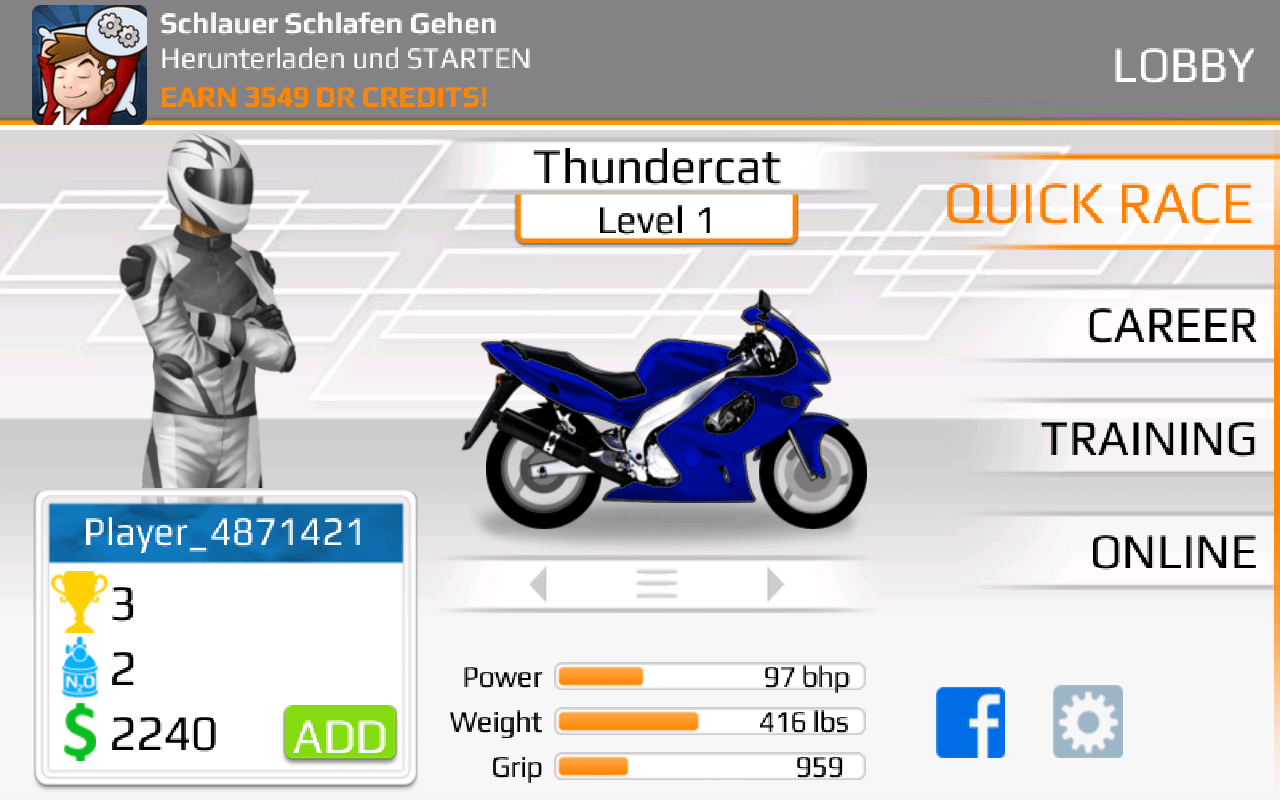 Drag Racing bietet drei Offline- und vier Online-Spielmodi