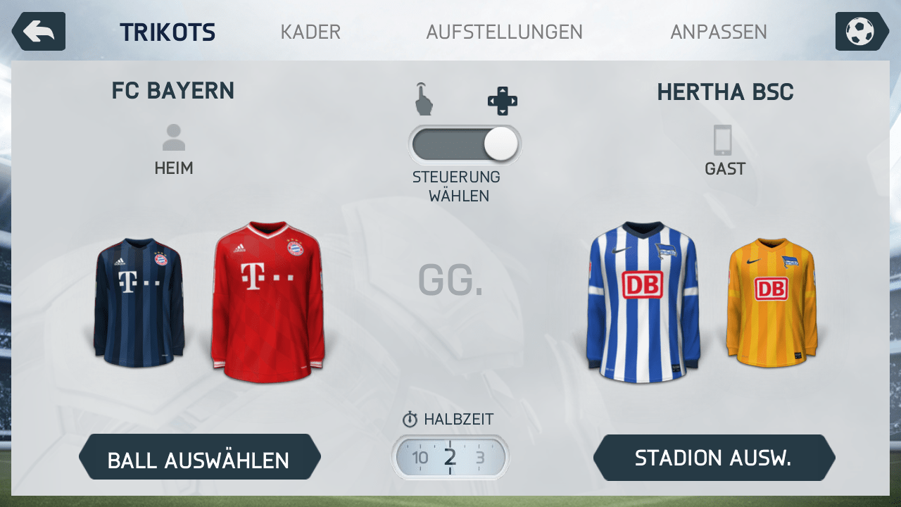 Wie es sich für jeden Ableger der Serie gehört, kommt auch die Version 14 mit allen aktuellen Kadern, zahlreichen Original-Lizenzen und jeder Menge Features. Du kannst mit den besten Teams der Welt sofort loslegen, sofern du mit der Steuerung vertraut bist. Zwei Arten stehen zur Auswahl: Alteingesessene Freunde der Spielreihe werden der klassischen Steuerung mit Joystick und virtuellen Tasten zusagen, die um einige Punkte erweitert wurde: Du forderst weitere Verteidiger an, spielst punktgenaue Flanken in den Lauf und lässt deine Gegenspieler ein ums andere Mal aussteigen – ganz einfach per Tipp auf das Display bzw. mit verschiedenen Kombinationen der einzelnen Tasten. Die Bedienung wird damit zwar noch ein Stück komplexer, nach einiger Übung eröffnen sich dadurch allerdings zahlreiche neue Möglichkeiten, das Spiel zu gestalten.