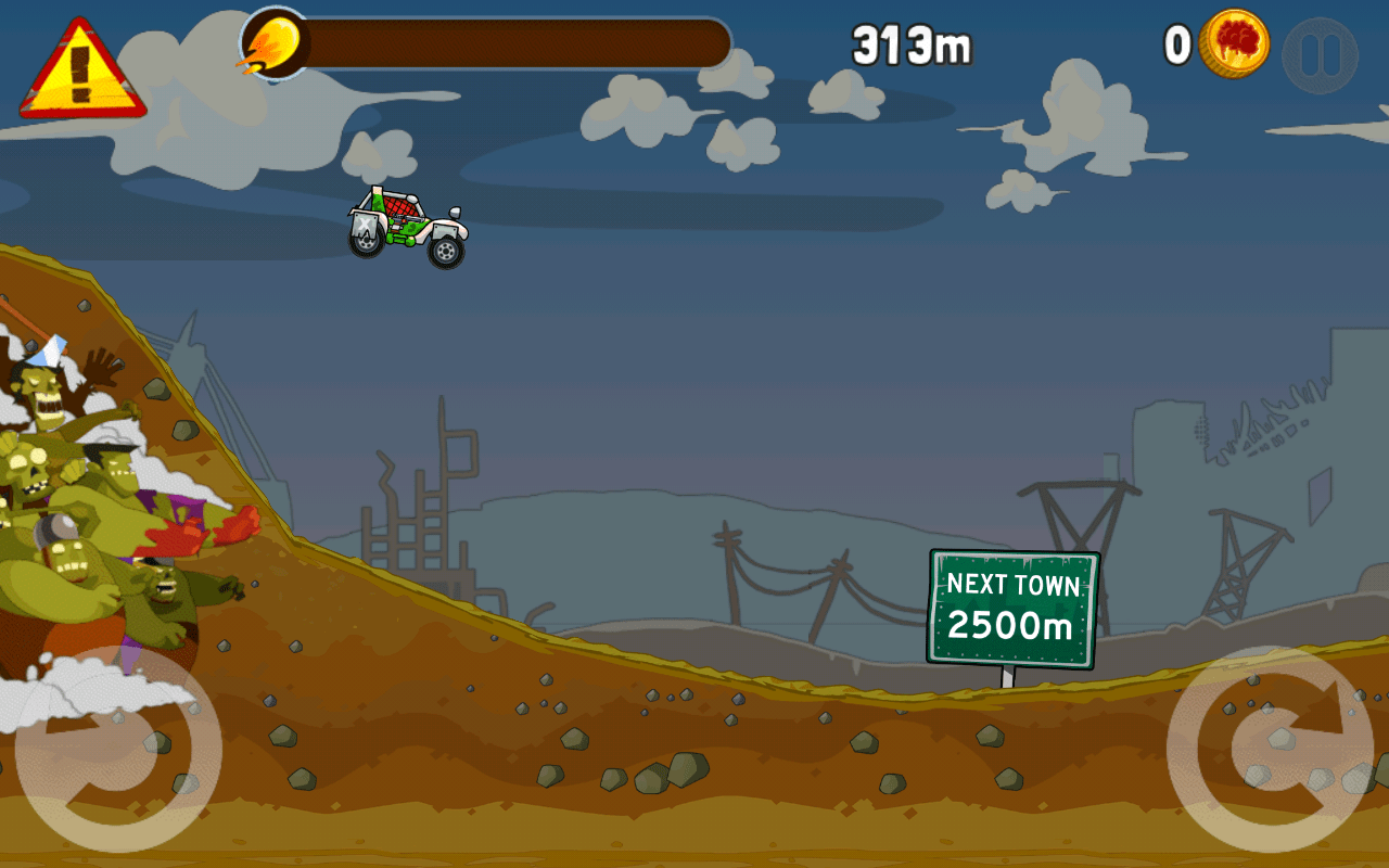 Eine Horde Untoter ist hinter dir her – gut, dass du ein schnelles Auto und eine Schusswaffe besitzt. Mit diesen beiden Artefakten bewaffnet machst du dich in Zombie Road Trip an die Flucht. Das hügelige Gelände gibt dir jede Menge Gelegenheit für waghalsige Stunts – diese steigern deine Motivation und Sorgen dafür, dass dein Fahrzeug noch etwas schneller dahinrast. Zusätzlich bekommst du für erfolgreiche Loopings einen kleinen Geldbonus, den du in bessere Vehikel oder stärkere Waffen investieren darfst.