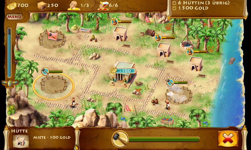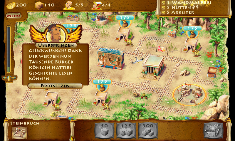 Um das Antippen der einzelnen Ziegel zu erleichtern, müssen Sie Ihre Gebäude an den von der Map vorgegebenen Baupunkten errichten. Dort dürfen Sie je nach Wunsch Steinbrüche oder Wohnhäuser einrichten: Während zweitere Gold liefern, wandeln erstere das Edelmetall in Steine für weitere Gebäude um.