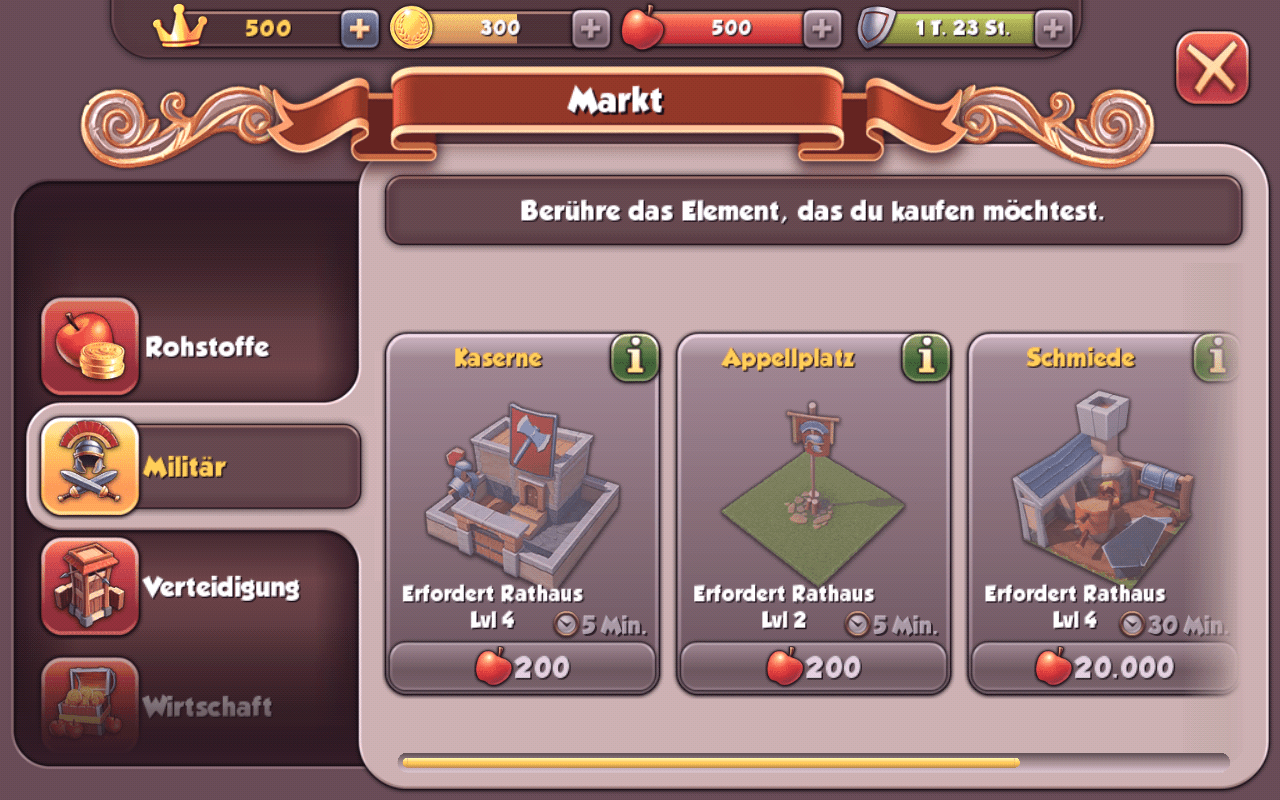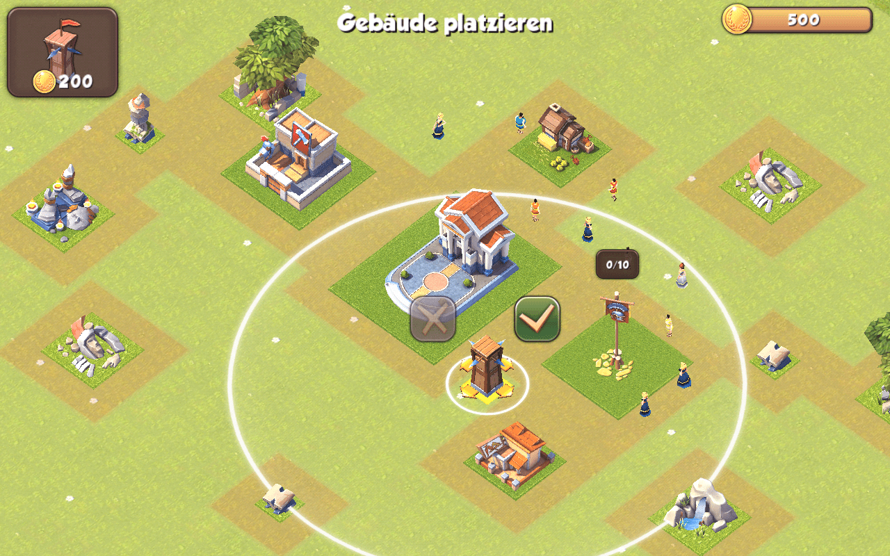 Das Errichten und Aufrüsten von Gebäuden nimmt viel Zeit in Anspruch. Wenn du kein Geld investierst, so musst du manchmal stundenlang warten – schon allein aus diesem Grund ist es ratsam, die Baureihenfolge taktisch klug abzustimmen.