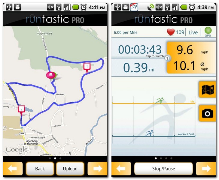 Natürlich bietet Runtastic auch die Möglichkeit der Facebook- und Twitter-Anbindung. Wer besonders stolz auf seine Trainingsergebnisse ist, kann diese nun nach dem Workout nahtlos in alle sozialen Netzwerke hinaus posaunen. In der Pro-Version ist es dank „Live-Tracking“ sogar möglich der Facebook-Community auf einer Karte seinen aktuellen Standort anzeigen zu lassen. Wer einen Bekannten anfeuern möchte, kann das jetzt auch gemütlich von zu Hause aus erledigen. Die Nachricht erscheint prompt auf dem Display des Sportlers. Möchte man zu guter Letzt auch noch Fotos von seinem Trip sharen, ist das auch kein Problem. Ein Klick genügt und das Foto wird samt geotagging-Informationen ins Netz geposted.